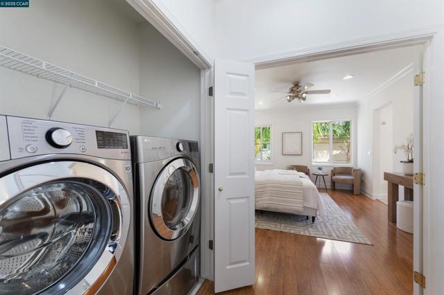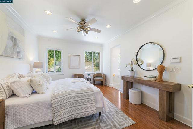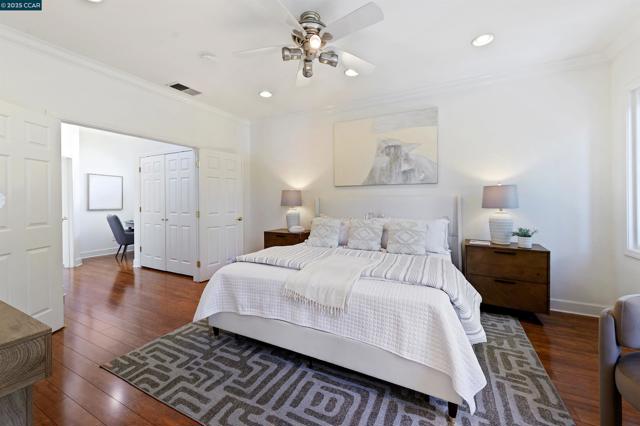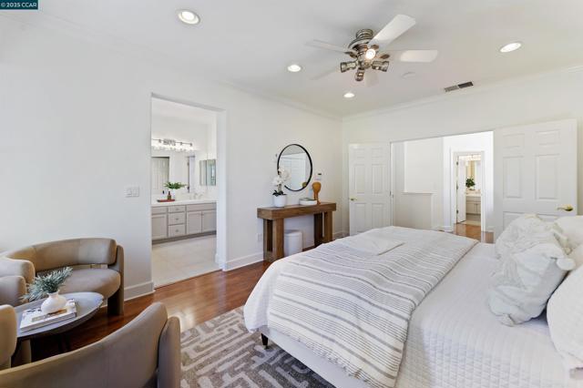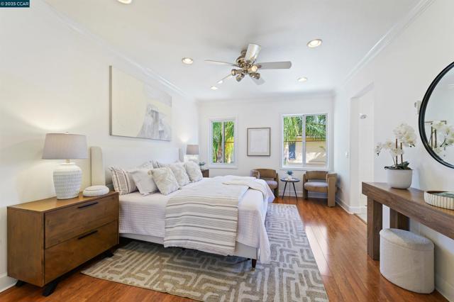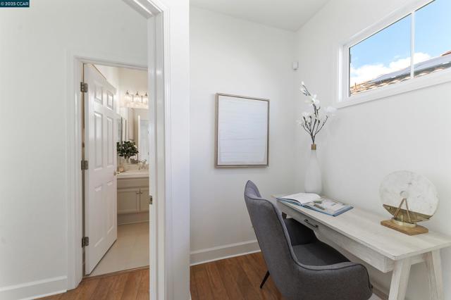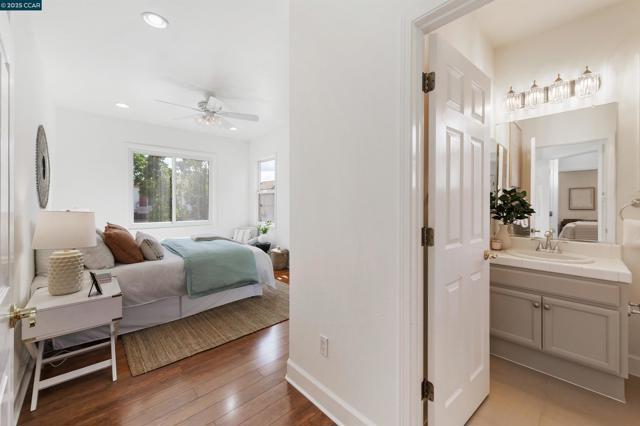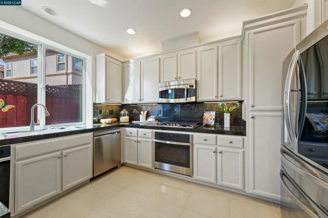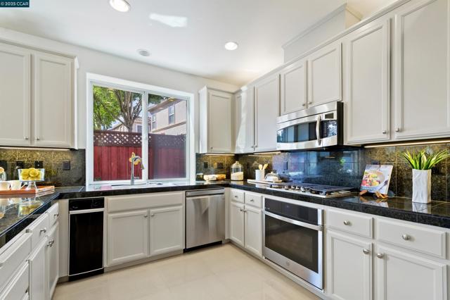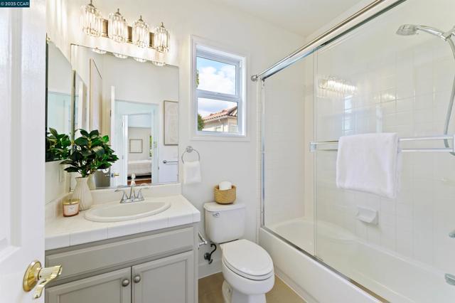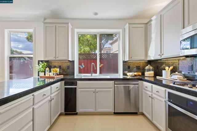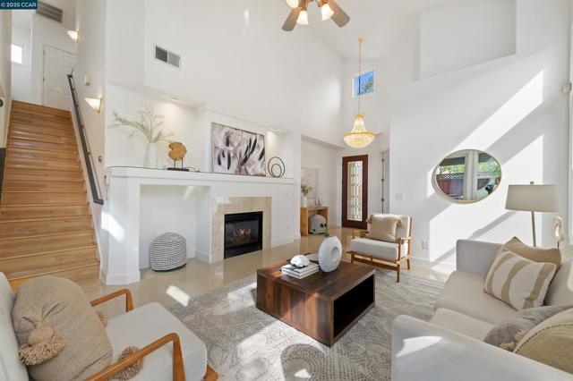 Homes seldom for sale in this small enclave of detached homes. Presenting the home with more must have features with 4 car off-street parking, lush landscape including lemon, plum, orange and rose trees, the largest covered patio ideal to host cozy relaxation or large celebrations Equally impressive is the freshly painted interior, vaulted ceilings, crystal chandeliers and large windows flooding the home with natural light. As a testament to the sellers commitment to highest state of the art systems including all appliances, HVAC, washer and dryer, dual pane windows, vinyl wood laminate flooring, on line six camera home security system, Nest thermostat, all designed to add comfort, convenience and efficiency. Add an office nook, large primary suite with ceiling fan, custom walk-in closet, tub and stall shower, a secondary ensuite bedroom with ceiling fan and mirrored closet doors and an upstairs laundry closet with new washer and dryer. The location is ideal for anyone wanting an active lifestyle including Emerald Glen Park, scenic trails, kids playground and all K-12 grade schools. Don’t settle for second best. Live the Dublin dream in a home with so many advantages, and only one savvy buyer will get this gem.