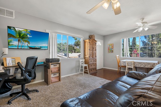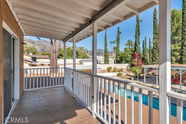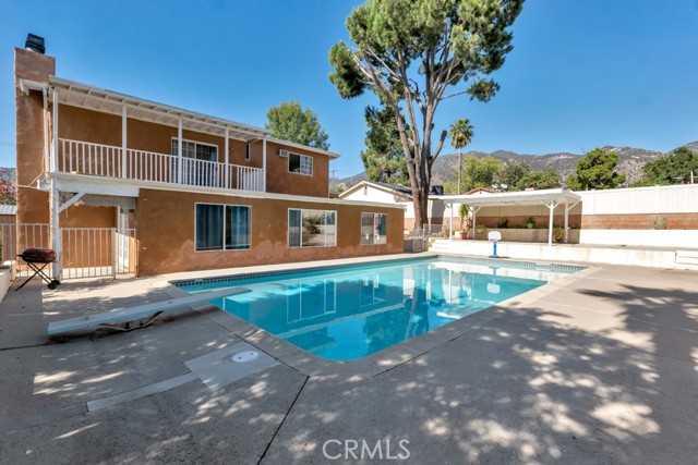 Rare Find in the Foothills of Sylmar – Multigenerational Living at Its Best! Welcome to this privately gated two story home, ideally nestled in the serene foothills of Sylmar. Offering over 3,000 sq. ft. of versatile living space on an expansive approx. 11,000 sq. ft. lot, this property is a perfect blend of comfort, functionality, and entertainment potential. The main residence features 4 spacious bedrooms and 2.5 bathrooms, with all bedrooms located upstairs for added privacy. The primary suite is complete with view balcony, walk-in closet, and updated ensuite bathroom featuring a granite vanity and tiled shower. Secondary bedrooms are generously sized, each offering peaceful treetop views. Step inside to find a welcoming interior adorned with newer wood laminate flooring, scraped ceilings, and dual fireplaces – one in the living room and another in the cozy family room. The tiled kitchen has tons of cabinet space, an adjacent dining area, and there’s a bonus enclosed patio with French doors, two ceiling fans, and flexible space for entertaining, a home office, gym, or playroom. Enjoy year-round comfort with dual pane windows, central air & heat, and the convenience of an indoor laundry area. The attached two-car garage offers direct access, while a large circular driveway provides additional parking, including RV potential. Step outside to an entertainer’s dream backyard, featuring a spacious patio, built-in BBQ, and a sparkling swimming pool—perfect for family gatherings or weekend get-togethers. But that’s not all—this home also includes a wonderful guest unit (permitted as a recreation room) with its own private side entrance. This space includes a living room, kitchen, 2 bedrooms, and 1 bathroom, offering an ideal solution for extended family, guests, or even rental potential. Located with easy access to the 210, 118, 5, and 405 freeways, as well as nearby parks, shopping, and schools, this home is a rare opportunity for buyers seeking space, flexibility, and location. Don’t miss this unique opportunity to own a one-of-a-kind property offering true multigenerational living!