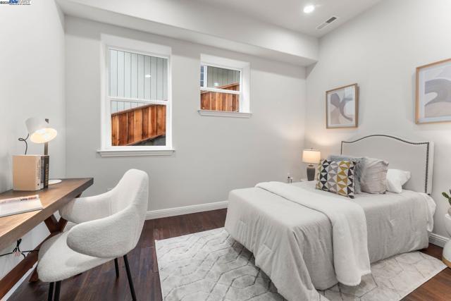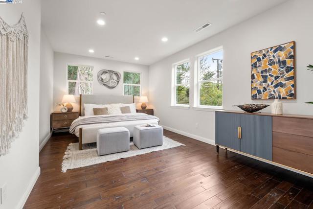 New Construction. Two car garage with two car parking spaces outside and aditional guest parking across the street. EV Charger outlet in garage. One bedroom and full bathroom on the main level. Wood Floors throughout. Side access off kitchen/dining area to front balcony and back yard. Down stairs utility room next to the large two car garage. High ceilings throughout. Bright open floorplan. Five bedrooms and four full bathrooms. Two full Master Suites. Large bright foyer at the top of the stairs. Sun Run Solar Leased. Central Heat and Air. All New Construction safety features. Large fenced back yard awaits your custom design. Located five minutes from Montclair Village. Quiet and private yet close to town, and easy access to the main road that takes you directly the freeway. A new house for your comfort and easy living. No deferred maintenance. Very Motivated seller.