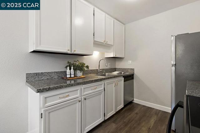 Welcome to this beautiful 2-bedroom, 1-bath lower-level unit featuring an open-concept layout designed for comfortable living and effortless entertaining. The dining area is perfectly situated under a centered chandelier, creating an inviting atmosphere for meals and gatherings. The kitchen boasts new appliances, ample counter space and crisp white cabinets, offering both style and functionality. 2 large bedrooms with large closets for all your storage needs. Located close to shopping centers, great restaurants and a large community park. This home offers both tranquility and accessibility. The community amenities include a pool, courts and outdoor sitting areas. Don’t miss the opportunity to live in this desirable Concord location!