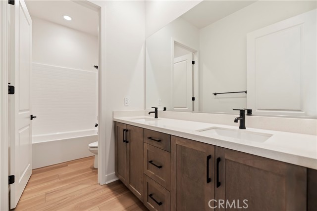 MOVE IN READY!-Altis at Skyline – An Active Adult Community by Tri Pointe Homes ~ Fall in love with single-story, open-plan living on this corner homesite. The great room is airy and bright, keeping everyone connected even while dinner is coming together in the kitchen. A second bedroom can welcome extended family or overnight guests. But wait, there’s more to love…rnrn~Shaker-style cabinets, stained in a warm hue, with matte black pulls and light quartz counters with gray veining meet at white subway tile backsplash in the kitchenrnrn~Luxury vinyl plank flooring, with both light and medium tones, covers the main living area; coordinating carpet, in a subtle pattern, covers bedroom floorsrnrn~Linen textured accent tile in the shower matches tile flooring in this dreamy primary bathrnrnLive the Altis lifestyle with a community clubhouse that includes a game room, event bar, workout studio, pool, hot tub, open space, community BBQ and monthly community events! Pickleball courts, putting green, trails and more!