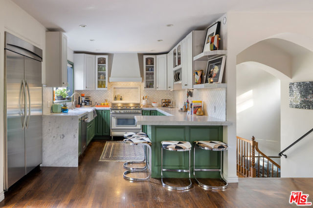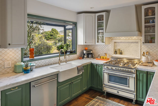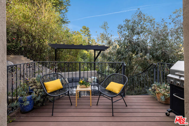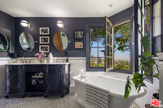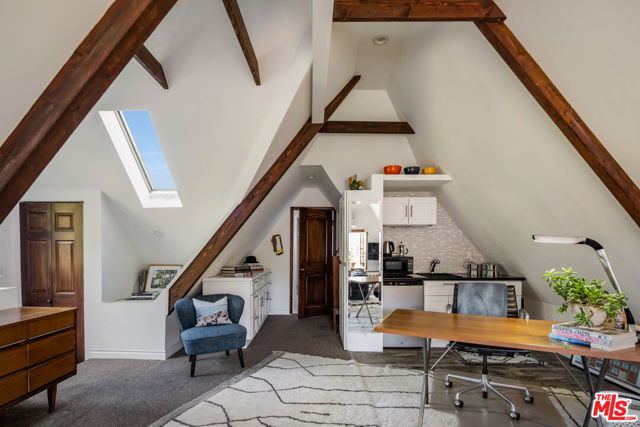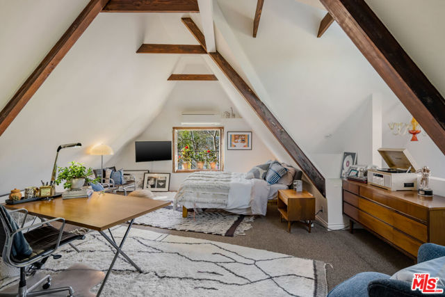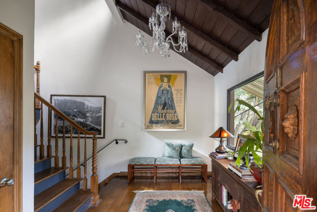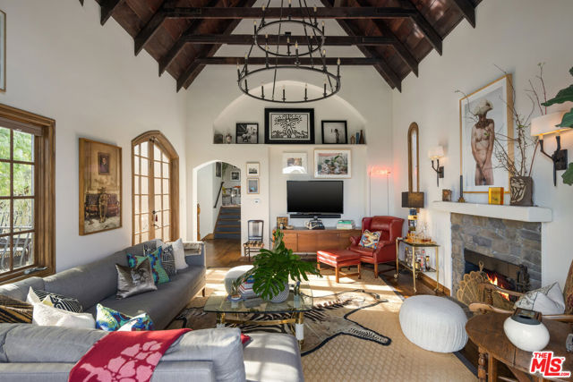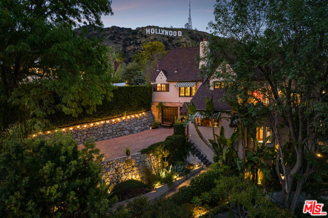 Peacefully tucked amidst the treetops of Beachwood Canyon, this fully furnished 1920s French Normandy chateau is a luxurious retreat where Old Hollywood charm meets modern sophistication! With breathtaking views of the Hollywood Sign, Griffith Observatory, and the iconic Los Angeles skyline, this secluded oasis offers an unparalleled experience in the Hollywood Hills. Step through the arched entryway and be transported to a world of eleganceexquisite walnut millwork, soaring truss ceilings, and abundant windows bathe the home in natural light. Cathedral ceilings tower over the living room’s stone fireplace and scenic French doors, opening to a picturesque deck that set the stage for unforgettable evenings under the stars. A designer chandelier lends a relaxing mood for intimate gatherings in the dining area. Crafted for the avid cook, the gorgeous kitchen features premium appliances, custom cabinetry, a distinctive backsplash, and gleaming marble countertops. Three generous bedrooms invite you to unwind after a long day, the grandest of which is the primary suite with its exclusive balcony, walk-in closet, and opulent ensuite. Multi-level outdoor seating areas, a covered fitness alcove, and lush greenery make this home an entertainer’s dream. Notables include the versatile loft with a separate entry, kitchenette, and a long, gated driveway offering ample parking. Its elevated location makes this sanctuary feel remote despite being only moments from the heart of LA. House is offered fully furnished and available for rent 1/8/2026