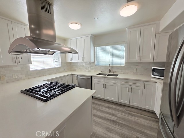 Welcome to 18338 Rayen Street, Northridge, CA 91325! This beautifully upgraded corner tri-level townhome features 3 bedrooms and 3 bathrooms, showcasing a bright open living room with high ceilings, laminate flooring, custom shutters, and a cozy fireplace. The remodeled kitchen boasts quartz countertops, a designer backsplash, white shaker cabinets, stainless steel appliances, and a sleek range hood, opening to a spacious family room perfect for entertaining. The primary suite offers a walk-in custom closet and a luxurious en-suite bath with dual sinks, a jetted tub, and a separate shower. Additional highlights include two secondary bedrooms, multiple balconies, and a direct-access two-car garage with washer and dryer. Ideally located near CSUN, shopping, dining, parks, and public transit, this home blends modern comfort, style, and convenience in the heart of Northridge.
