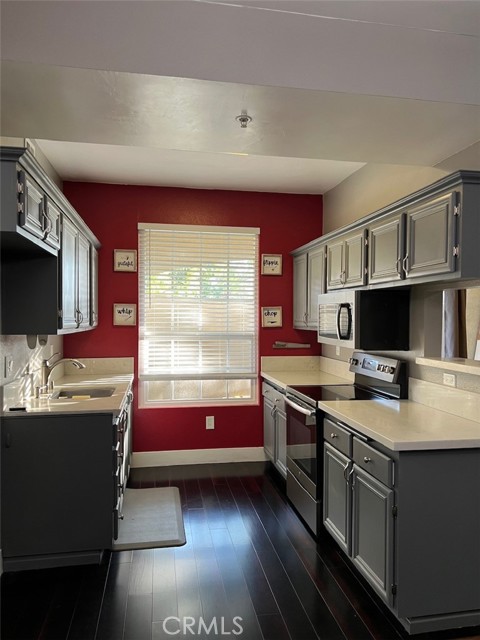 Beautiful Condo in a great community. This condo is a downstairs unit with its own private patio area. Condo has been remodeled and has modern laminate flooring, Quartz counter tops, gray cabinets, Good size bedroom. Indoor laundry by dining area. This condo has one parking spot along with a common parking area available. It also has a one car garage for your vehicle or storage. This gated community features all the club house amenities like the Sparkling pool, Sauna, Fully equipped gym with a theater, Poker room, Billiard room, Tennis courtyard and a barbeque area. This Wonderfully Maintained Complex Is Gated for Your Security and Privacy . Close to all the shops, Fine dining and the UCR College. HOA is paid by owner which also covers water and trash. Very close to Canyon Springs shopping center.