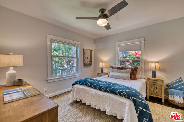 Timeless Venice Craftsman rebuilt in 2012, preserving the original home’s vintage character and charm. An inviting front porch welcomes you inside to a warm free-flowing floor plan with rich oak floors, crown moldings, wainscoting, coffered ceilings & thoughtful modern updates. A sun-filled country-style kitchen with a double- farmhouse sink flows into both the dining room & a backyard patio that’s perfect for al fresco dining . Rounding out the house are 2 comfortable en-suite bedrooms both w/ walk-in California closets & dual-pane windows. Off the patio, the detached 2-car garage is currently in use as an office/den with its own separate entrance and additional space for storage. There is also 1 driveway space. Great location on a pretty tree-lined street, just two blocks from the Abbot Kinney restaurants and shops, & moments away from the excitement of Rose Avenue & Venice Beach. Blending the best of old & new Venice, this is a property to treasure.