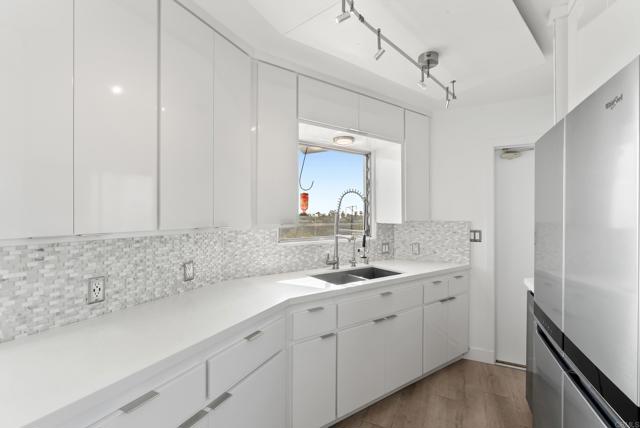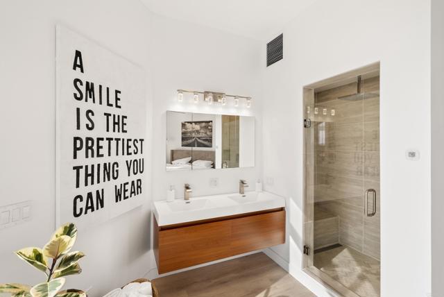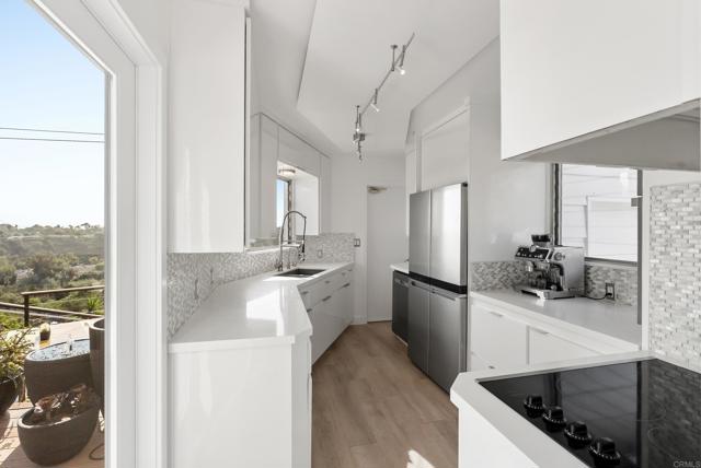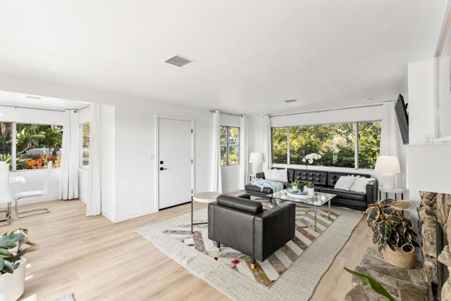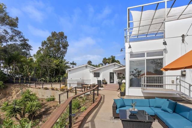 Mid-Century Modern Beauty with Ocean Views on 1.24 Acres in Leucadia Welcome to a rare opportunity to own a completely reimagined 1956 mid-century modern masterpiece, situated on 1.24 private acres in the hills of Leucadia—one of San Diego’s most sought-after coastal communities. This single-story home combines timeless architecture with extensive, high-end renovations, delivering ocean and hillside views from nearly every room. Inside, you’ll find modern finishes throughout, with attention to detail in every space. The bedroom wing has been completely rebuilt from the floors up, offering updated construction, style, and peace of mind. The result is a seamless blend of mid-century charm and contemporary luxury. Step through the front door into a sunlit living area with panoramic picture windows and sliding glass door that invite the outdoors in. The living room, complete with a gas fireplace, flows into the dining area and a sleek galley kitchen featuring quartz countertops, stainless steel appliances, modern cabinetry, and designer hardware. The primary suite is a serene retreat with expansive views, remote-controlled shades, an en-suite bath, and a spacious dressing room with its own washer and dryer. Each of the four bedrooms features oversized upgraded solid-core doors, and one includes a private entrance, making it ideal for guests, in-laws, or rental income. Additional highlights include: • 2020 4-zone Lennox Elite HVAC for customized comfort • Two full laundry areas, each with washer and dryer • Luxury vinyl plank flooring throughout • No interior steps for easy accessibility • Garage parking for two cars, plus space for at least five more vehicles • Rooftop deck with stunning ocean-view sunsets • Xeriscaped landscaping with succulents and water-wise design • No HOA and no Mello-Roos Whether you’re entertaining outdoors on the spacious patio or enjoying the peaceful, private setting with postcard-worthy views, this home offers the ideal blend of coastal living, modern design, and everyday functionality.
