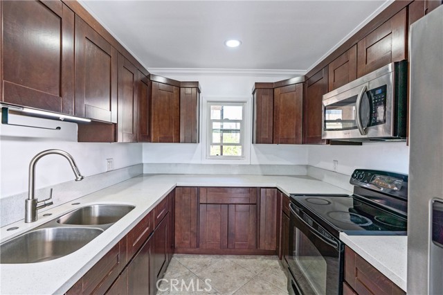 Discover this charming and well-maintained condo located just moments from The Americana at Brand, Glendale Galleria, Glendale Fashion Center, and Central Park Paseo. Inside, you’ll find elegant base and crown moldings, stunning flooring, and large windows that fill the home with natural light. The bright and spacious living room features a decorative fireplace and opens to a private balcony with a lovely view.rnThe kitchen offers rich wooden cabinetry, ample counter space, and durable tile flooring. Both bedrooms are generously sized and include plenty of closet space. Community amenities include assigned parking, a serene courtyard, and a BBQ area with lounge seating. (Accurate HOA price will be updated on a later date.)