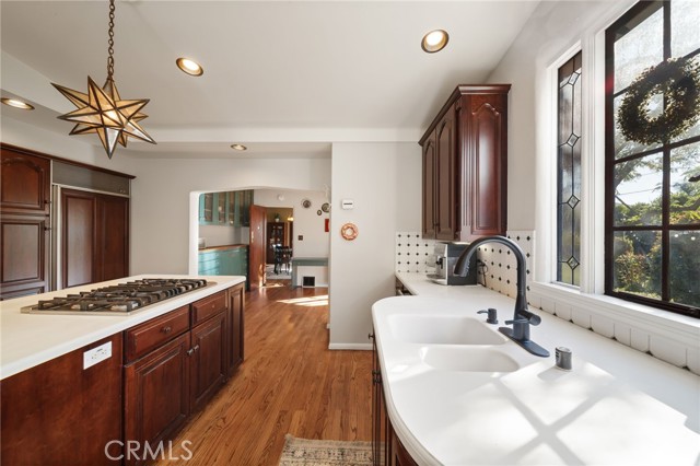 This beautifully preserved 1929 English Revival home showcases timeless Old-World charm, with unmistakable French architectural influences. From its steeply pitched gable roof and storybook silhouette to the elegant arched doorways and original detailing, the home evokes the romantic ambiance of a European countryside manor. Whether viewed as a classic example of Tudor/English Revival or through its refined French styling, this two-story residence offers a rare blend of architectural heritage and artistic craftsmanship. Circular Motor court and fountain greet you and your guests. Entry with grand staircase. Large rooms. Remodeled kitchen with butler’s pantry. Rotunda breakfast room with windows to the wonderful, landscaped backyard. Recording studio or office off garage gives it endless possibilities. Built 1929 this Historical property is on the Mills Act which affords it substantial Tax Advantages. Please call for more details. Truly a Country Estate that sits on a 11,250 sq.ft.lot.
