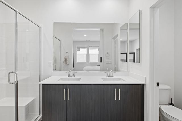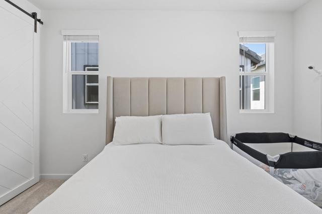 This beautifully built fully detached condo lives just like a single family home. Boasting a number of high-end upgrades, owned solar, tankless water heater, dual zoned air conditioning and energy efficient vent fan – Perched in the exclusive Blossom enclave of Sommers Bend. Step inside to a light-filled, open-concept layout, luxury vinyl plank flooring, and a chef’s dream kitchen featuring high end quartz countertops, full slab backsplash, custom soft closing cabinets, waterfall island, and a walk-in pantry. Even more upgrades include motorized blinds, high-end appliances, Belgard landscaping, and electrical upgrades. No expense spared—photos can only begin to capture the craftsmanship and detail throughout. A sleek electric fireplace creates a cozy yet modern centerpiece in the living space. The layout is ideal for families or remote professionals—with a first-floor bedroom and full bath for guests, kids, or a home office. Upstairs offers a luxurious primary suite with an upgraded barn door, Jack-and-Jill bedrooms, and a spacious modern laundry room with built-in sink. This is a smart home with built-in WiFi access points for long range connectivity and Cat 6 outlets, Ring doorbell, keyless entry, and a wifi-enabled garage door. Great OUTDOOR SPACE Belgard pavers and a robust drainage system to maintain the integrity of the paver system and foundation. Key features include: EV Charging Custom cabinets and countertops WiFi Smart Blinds All floor areas upgraded with premium floor, tile or carpet. Sommers Bend Community amenities includes new parks, a hot tub/spa, a large swimming pool, pickleball courts, table tennis, a covered patio area, a BBQ area, a garden area, a firepit, a clubhouse with a reception area, a gym, and two indoor gathering areas (one with a kitchen).