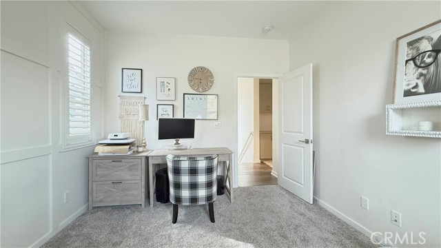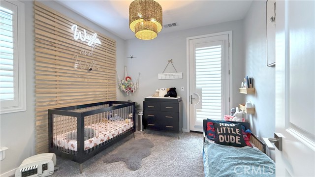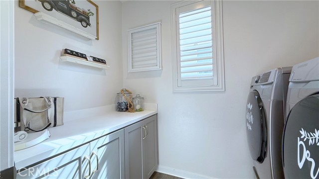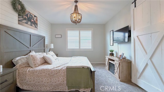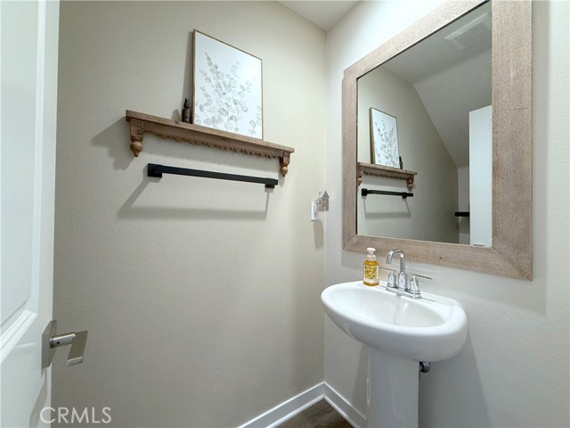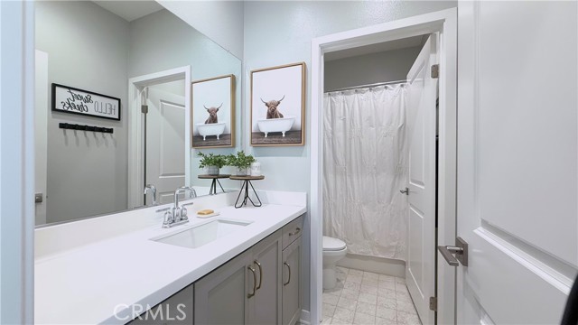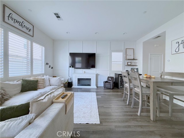 Welcome to your new home sweet home! Discover this bright and modern two-story home in the heart of the lively Bedford Community. The open-concept main floor is perfect for entertaining, with a gorgeous spacious kitchen that flows out to a sunny private patio featuring a paved section, turf, and an outdoor tv. The kitchen boasts tasteful features with a hexagon marble backsplash complimented with warm soft grey cabinets and uppers for additional storage and a brand new garbage disposal. The vinyl wood floors continue throughout the lower level, up the naturally lit stairwell accented with a custom mosaic pattern, and into the upstairs hallway and laundry room. Across from the hallway storage area, a full bathroom sits between two bedrooms— one of which features a small private balcony. The primary bedroom is inviting and spacious, complete with a cozy side nook, and a farmhouse style sliding barn door that leads to the en-suite bathroom. A double sided mirror door opens into the walk-in closet with custom built in shelving. The walk-in shower and private commode area complete the space. The two-car garage is wired and ready for EV charging installation. Residents enjoy access to Bedford’s resort-style amenities— two clubhouses, pools, fitness centers, and charming community BBQ areas. Fall in love with the variety of options available for dining, shopping, hiking, biking, and having hot spots nearby like the Shops at Dos Lagos, Eagle Glen Golf Club, and Amazon Fresh. Come see why Bedford feels like home!