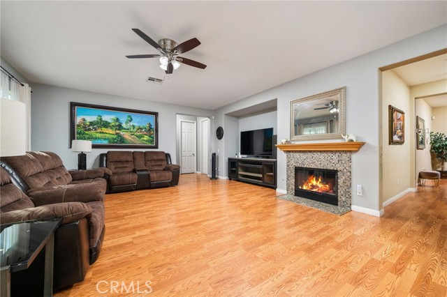 Welcome to this beautifully maintained 5-bedroom, 4-bath home located in the desirable Rancho Belago community of Moreno Valley. Offering approximately 3,101 sq. ft. of living space on a 6,534 sq. ft. lot, this spacious two-story home combines comfort, functionality, and modern style.rnrnThe open-concept floor plan features a large family room with fireplace, adjacent to a gourmet kitchen with granite countertops, center island, and plenty of cabinet space. A bedroom and full bath downstairs provide flexibility for guests or multi-generational living.rnrnUpstairs, the expansive primary suite includes a walk-in closet and an en-suite bathroom with dual sinks, soaking tub, and separate shower. Two additional bedrooms share a Jack-and-Jill bath, while another secondary bedroom offers a private en-suite—perfect for teens or guests.rnrnAdditional features include a three-car garage, upstairs laundry room, central heating and cooling, and a pool-sized backyard ready for your custom touches. This home has been well cared for by its original owners and is located near schools, shopping, dining, medical facilities, and easy freeway access.rnrnLow HOA—only $30/month through Powerstone Property Management. Built in 2005, this residence offers timeless design and convenience in one of Moreno Valley’s most sought-after neighborhoods.