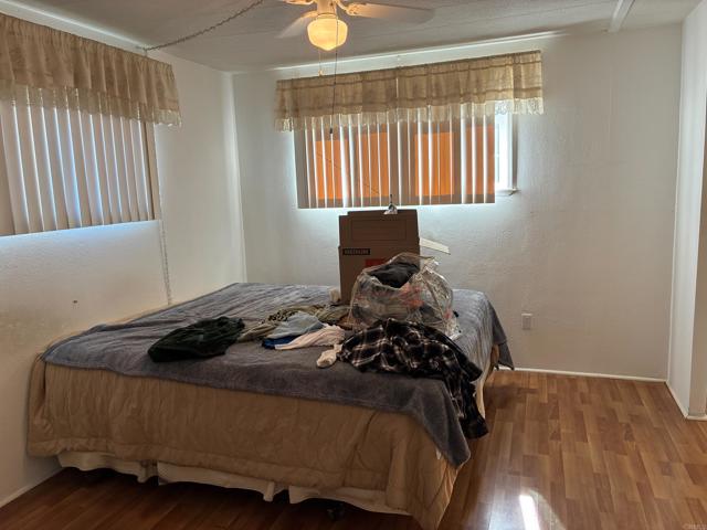 Affordable home located in Imperial Mobile Estates; a clean, well kept 55+ community with rent control – space rent is only $635 per month! This home features many upgrades including refinished walls and dual pane windows. The Primary Bedroom has two closets – one is a walk in closet. Spacious storage shed and work space with work bench. Central A/C + 2 ceiling fans. Enclosed porch / California room. This beautiful 55+ park offers many social activities & amenities, 2 pools (one heated year around), spas, rec room, clubhouse, billiards, exercise room, game room and quiet rooms to enjoy meetings. RV parking available for a small additional fee. There is a bus stop at the entrance to the park for convenient transportation. Grocery stores, restaurants, and banks are all within walking distance.