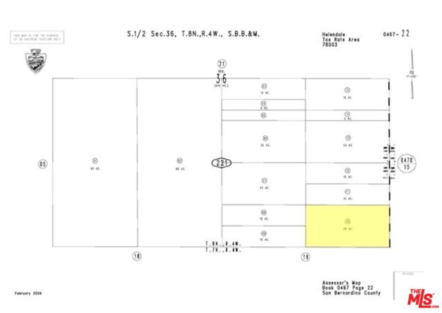 Expansive 20-acre parcel located in the quiet desert community of Helendale. Zoned Residential-Vacant Land, the property offers convenient access to Victorville, Barstow, and Silver Lakes amenities. This is a Probate Sale, no court confirmation required.