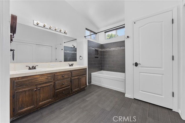 : Shower, Bathtub, Closet In Bathroom, Shower In Tub, Double Sinks In Bath(s), Tile Counters