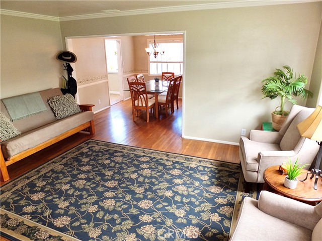An exquisitely renovated 3 bedroom, 2 bathroom home featuring central AC, new roof, beautiful hardwood floors, crown moldings plus updated kitchen and bathrooms… set amidst towering trees… in Long Beach. The expansive motor court driveway to the 2 car garage plus broad lawns, brick trimmed planters and a bricked reception landing afford a welcoming approach. The moment you pass through the foyer you feel the casual graciousness and natural warmth of the living and dining rooms. The sun filled kitchen with dramatic lighting enjoys an open view to the open beamed fireside family room with French doors to the secluded rear patio. The front bedroom wing includes a guest bathroom, 2 bedrooms, one with a custom fitted closet. The laundry room is convenient to the family room and secluded primary suite boasting a fireplace, walk-in closet, a private compartmentalized bathroom with shower plus French doors to the rear patio and grounds. Privacy walls serenely enclose the enchanting party patio featuring a built in barbecue… paved side yards plus a “tucked away” above ground covered spa. Truly an amazing home and lifestyle opportunity… in one of Long Beach’s most sought after neighborhoods!