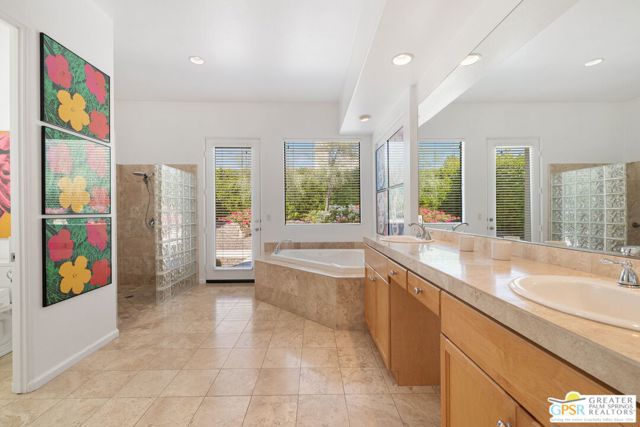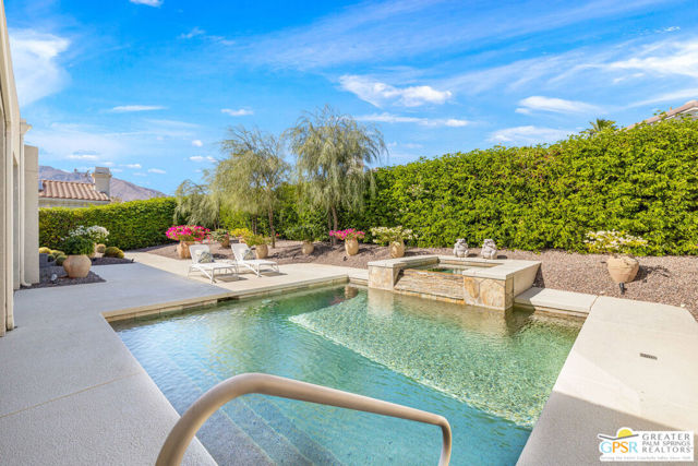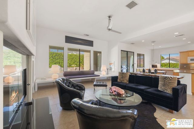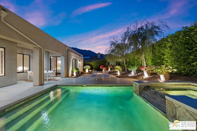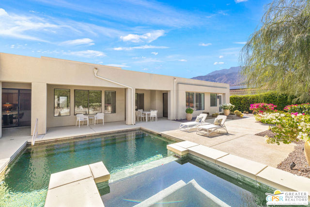 Palm Springs Contemporary living at its best! Single level on land you own (Fee Land) and ultra-private, this beautifully maintained home in the sought-after PS Colony neighborhood delivers amazing curb appeal from its desirable corner lot. A detached casita adds wonderful flexibility for guests or extended stays, complementing the home’s 4 bedrooms and 3.5 baths overall. Inside, the open-concept living area is anchored by a stylish fireplace and flows effortlessly to the formal dining room and expansive kitchen with oversized island, walk-in pantry, and a convenient butler’s pantry between the kitchen and dining areas. The primary suite opens directly to the pool and features a spa-like bath with separate tub and shower, dual vanities, large walk-in closet, and direct patio access. Outdoor living shines with a sparkling pool and spa framed by multiple conversation areas, artful landscape lighting, and thoughtfully designed hardscape that make entertaining a joy. Additional highlights include leased solar in place, newer foam roof, attached garage with built-ins, and pride of ownership throughout. Dramatic views of Mt. San Jacinto and the twinkling lights of the Aerial Tram create the perfect Palm Springs backdrop. The best of Uptown Palm Springs is just a short hop away. Take the Matterport Virtual Tour for a better sense of flow.