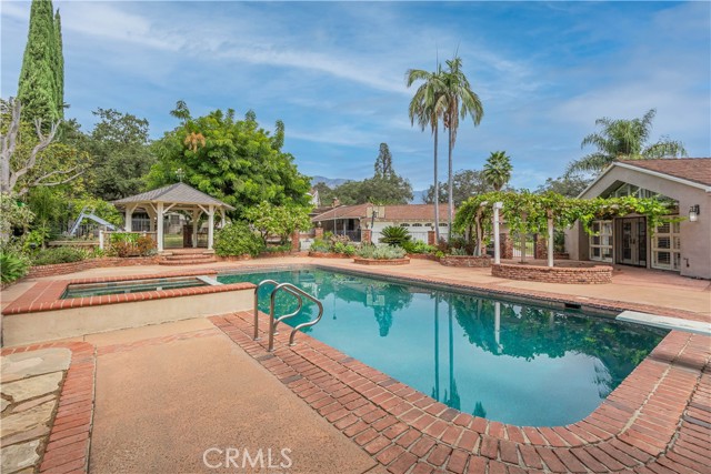 This spectacular custom estate is situated in Arcadia’s prestigious Upper Rancho neighborhood on one of the city’s most distinguished tree-lined streets. Set on a park-like, all-flat lot of over one acre, the property features a grand main residence and a private detached guest house.rnThe main home offers 5 spacious bedrooms including 3 suites (with 4 bedrooms conveniently located downstairs), elegant formal living and dining rooms, and a bright kitchen designed for both comfort and entertaining.rnThe guest house features a soaring cathedral-ceiling living area, a full kitchen, bedroom, and bathroom—ideal for extended family, guests, or a private office. Additional highlights include a 3-car attached garage plus guest suite next to garage, circular driveway, and beautifully manicured gardens with mature trees providing privacy and serenity.rnLocated within the award-winning Arcadia Unified School District, and just minutes from the Arboretum, Santa Anita Mall, fine dining, and the 210 Freeway, this exceptional property combines convenience with timeless elegance. Ready to move in at anytime!