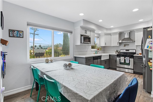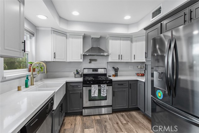 Welcome to your dream home! This two-story townhome has been beautifully updated and boasts 3 bedrooms, 2.5 baths in the desirable Citrus Grove East neighborhood. The inviting renovated kitchen shines with a huge farmhouse sink, a pot-filler over the stove, and a large vent hood, perfect for culinary enthusiasts. Enjoy easy freeway access, making commutes to Glendale, Eagle Rock, and Pasadena a breeze. Step inside to discover stunning new laminate flooring in the stairway and upstairs bedrooms, while the unique herringbone wood floor in the living room showcases the craftsmanship of a skilled woodworker. Cozy up to the working gas fireplace that adds warmth and character to the space. The home has been thoughtfully updated with a new A/C unit installed in 2020, and just three years ago, brand new Milgard double-paned windows were added for energy efficiency and sound insulation. The convenient laundry room is just 5 feet from the front door and includes two washers and dryers for your convenience. There are 2, side-by-side, parking spaces directly below the unit with plenty of room for storage. Enjoy breathtaking views from the property, looking east toward Eagle Rock and the stunning California sunrise. This home is truly a gem, ready for you to make your own.