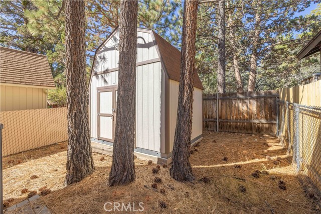 Nicely remodeled Gambrel style home has been upgraded with a new kitchen, including stainless steel appliances, granite counters and new cabinetry, updated lighting fixtures, ledger stone facing on the fireplace, dual pane windows, upgraded doors and hardware, new flooring, and paint (inside and out). 2 large bedrooms with spacious closets upstairs and pantry/storage area downstairs. All furnishings and supplies are included. Composite deck in front and a huge shed in the fully fenced back yard. Newer roof, level parking. The front deck is perfect for relaxing and entertaining while enjoying the natural surroundings. Take advantage of the endless nearby national forest trails for morning walks. You will love the cool summers for biking and hiking, not to mention the winter sports and year-round adventure that make this resort community so desirable. Just a short stroll to Sugarloaf’s General Store, Kallans Bar & Grill, and local events. Excellent turnkey investment currently managed by Cool Cabins, or just your personal mountain escape, or both! Located in one of Big Bear’s most peaceful and charming communities, just minutes from Big Bear Lake, the Village, hiking and biking trails, renowned ski resorts Snow Summit and Bear Mountain, and local shops and eateries. Whether you’re looking for a year-round residence, a mountain retreat, or a savvy short-term rental investment, this property checks all the boxes.
