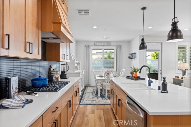 Discover this beautifully maintained John Balfanz home in the gated community of Amberley at Belcourt. Built in 2023, this 3-bedroom, 2-bathroom residence offers 1,785 sq. ft. of thoughtfully designed living space with a Prairie elevation and rich oak accents throughout. Inside, you’ll find high-end plantation shutters, floating shelves in both hallways, and elegant wainscoting details including a custom coat hook feature at the entry. The kitchen stands out with stainless steel appliances, bold backsplash, and fixtures that tie the space together. Step outside to a fully completed backyard with elevated planters, additional concrete work, and plenty of room to relax or entertain. The home also includes paid-off solar, providing lasting efficiency and savings. Amberley residents enjoy outstanding amenities such as a community clubhouse, Olympic-sized swimming pool, beautifully landscaped walking paths, multiple parks, and inviting social spaces perfect for neighborhood activities.