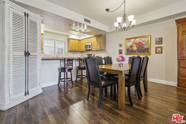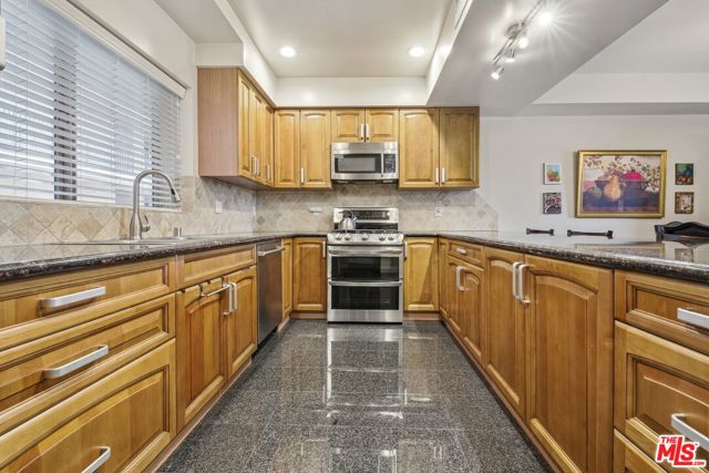 Discover this spacious and bright corner unit featuring 3 bedrooms and 3 bathrooms, with two of them being en-suite. The kitchen is a chef’s delight, equipped with granite countertops, stainless steel appliances, and abundant cabinet space. The expansive primary suite includes a beautifully renovated bathroom and a walk-in closet. Other notable features of this unit include elegant wood floors, recessed lighting, a cozy living room fireplace, and convenient in-unit laundry. Enjoy the tranquility of the south-facing patio with its peaceful hillside views. The property has a beautiful formal entry with secure access, 2 tandem parking spaces, and a rec room/gym for residents. Situated in the desirable Toluca Lake area, this charming unit offers easy access to shopping, dining, and nearby NoHo arts district.