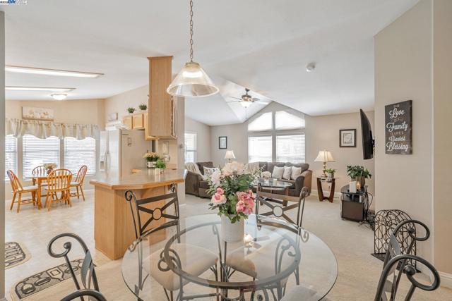 Welcome to this beautifully maintained 3-bedroom, 2-bath manufactured home offering exceptional value in one of Pleasanton’s most sought-after 55+ communities. Ideally located just minutes from downtown Pleasanton, shopping, dining, and award-winning wineries, this home blends comfort, convenience, and style. Inside, you’ll find a spacious open floor plan with abundant natural light, vaulted ceilings, and a bright kitchen perfect for everyday living or entertaining. A separate laundry room and plentiful built-in storage throughout add practical function. The standout feature? A rare, covered carport with a private roll-up door—ideal for secure parking, extra enclosed storage, a unique upgrade not often found in this community. The primary suite offers a generous walk-in closet and a spa-inspired bath with walk-in shower. Enjoy low-maintenance living with all the benefits of a well-established neighborhood. Don’t miss this rare opportunity to move up into a stylish, affordable home in the heart of Pleasanton. Schedule your private showing today! Fireplaces: NO