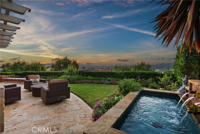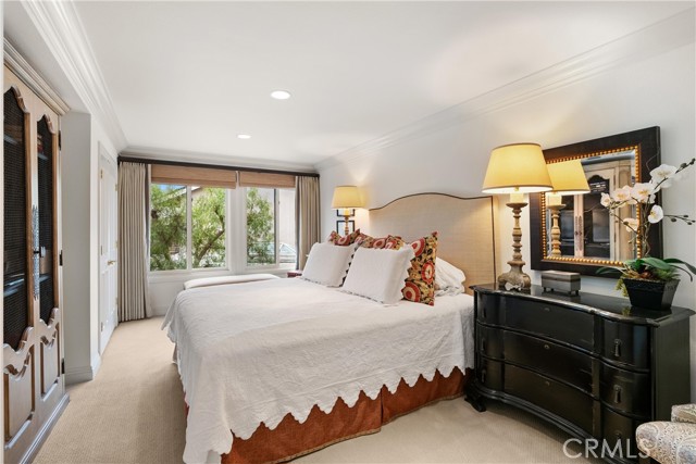 Nestled within the prestigious guard-gated enclave of Big Canyon, this exceptional residence is ideally positioned on a highly coveted, elevated oversized lot. It commands sweeping vistas, breathtaking sunsets, mountains, city lights, and the serene expanse of Upper Newport Bay. The thoughtfully expanded traditional floor plan features a luxurious primary suite oriented to capture the stunning views, complete with a spa-inspired en suite bath, an elegant walk-in closet, and a versatile view room currently utilized as a private fitness space. One of the additional guest suites offers a spacious sitting area and en suite bath, while the third bedroom features a hallway bathroom. Upon entry through the grand foyer, the main level impresses with rich Brazilian walnut flooring, soaring two-story ceilings, and an abundance of natural light that complements the refined, soft-toned color palette. Entertain with ease, whether hosting a formal dinner indoors or enjoying alfresco dining amidst a tranquil setting enhanced by a charming fountain. This distinguished property is available for lease either fully furnished or unfurnished, offering a rare opportunity to enjoy resort-style living in one of Newport Beach’s most sought-after communities.