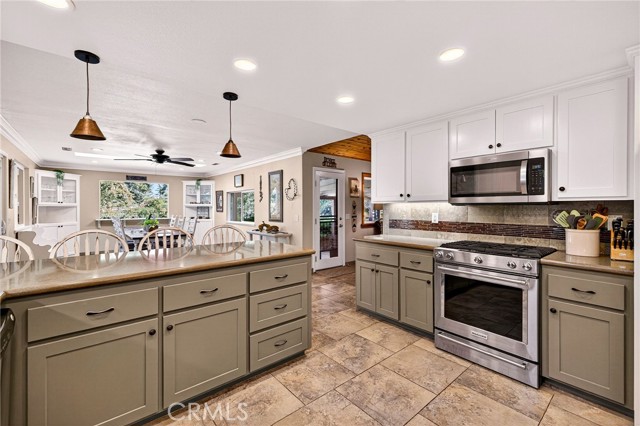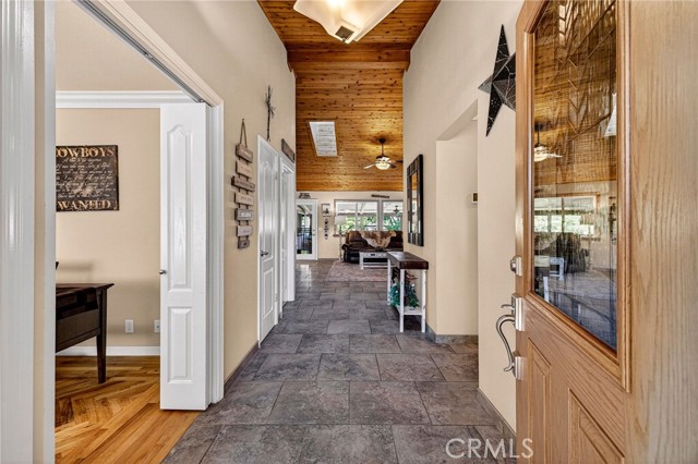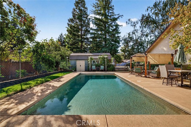 Tucked in the countryside just minutes from town, Roseanna Ranch is where modern comfort meets peaceful country living. This stunning 2.04-acre property has been lovingly renovated and designed for those who dream of wide-open spaces, horses in the pasture, and sunsets over the arena. The beautifully remodeled farmhouse spans approximately 2,100 sq. ft. with 4 bedrooms and 2 bathrooms, offering the perfect blend of rustic charm and modern sophistication. Inside, Italian tile flows throughout the main living spaces, luxury vinyl plank flooring accents the bedrooms, and custom wood flooring adds character to the first floor. The spacious living room features a vaulted knotty pine ceiling with skylights that fill the home with natural light, while an efficient Heat Tech wood stove adds cozy ambiance. The kitchen is a showpiece with quartz/Cambria countertops, stainless steel appliances (new in 2019 & 2023), a garden bay window, and a dining room addition with skylights and built-in china cabinets. The primary suite includes a walk-in shower, a walk-in closet, and elegant finishes. Updates include new doors and windows, crown molding, a whole-house vacuum, fan, Culligan water softener, filtration system, and a new HVAC unit. Step outside and fall in love with the fully fenced and gated acreage, featuring manicured lawns, redwood, birch, crepe myrtle, and maple trees surrounded by colorful perennials and blooming roses. A solar-heated pool with a large patio area provides the perfect setting for entertaining, while raised garden beds and a fenced orchard offer a touch of farm-to-table living. For equestrian lovers, this property is a dream come true. The two-stall barn features paddocks, a tack room, hay storage, a large farm sink, a full bathroom with hot water, electric fans, and washer/dryer hookups. A 110’x120’ riding arena with sprinklers and excellent footing sits beside a half-acre pasture with irrigation and RV or trailer storage. There’s also a chicken coop, fenced garden, and space for tractors and equipment. A 12’x24’ detached studio with split HVAC, insulation, and electric is perfect as an art studio, office, or guest space. With 40 owned solar panels on the barn, a new well pump and casing (2023), and Byers LeafGuard gutters, this property offers beauty, efficiency, and peace of mind. Roseanna Ranch is more than a property; it’s a lifestyle of comfort, connection, and country charm just minutes from town and local schools.