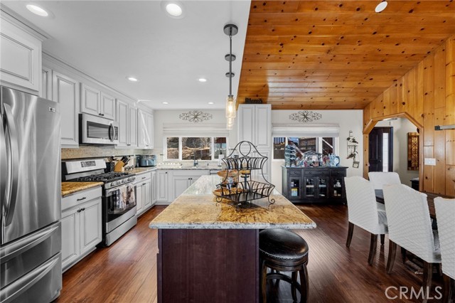 Mountain Luxury Meets Modern Living Fully Furnished Retreat with Lake RightsrnDiscover your dream mountain escape in the heart of Lake Arrowhead. This stunning 4 bedroom, 3.5 bath retreat spans 2,676 sq. ft. of beautifully furnished living space, offering breathtaking views and exclusive Lake Rights for private lake access.rnBlending luxury, comfort, and convenience, this home is perfectly designed for both relaxation and productivity. Enjoy blazing-fast Starlink internet, ideal for remote work or streaming, and the peace of mind that comes with a standby Generac generator for year-round reliability.rnStep inside to find two inviting fireplaces, one in the living room and another in the family room along with multiple scenic decks, including private access from the luxurious primary suite. The chef’s kitchen is a showstopper, featuring granite countertops, stainless steel appliances, a wine fridge, and a spacious center island perfect for entertaining.rnThe primary suite offers the ultimate retreat experience, complete with a spa-inspired bathroom, walk-in shower, dual vanities, and a large walk-in closet. A versatile fourth bedroom with its own private entrance, full bath, and kitchen hookups makes an ideal guest suite, in-law space, or potential rental opportunity.rnThis home is fully furnished and turnkey and ready for you to move in and start enjoying the mountain lifestyle immediately.rnDon’t miss this rare opportunity to own a mountain luxury home with private lake access, modern amenities, and unforgettable views.