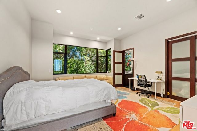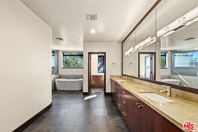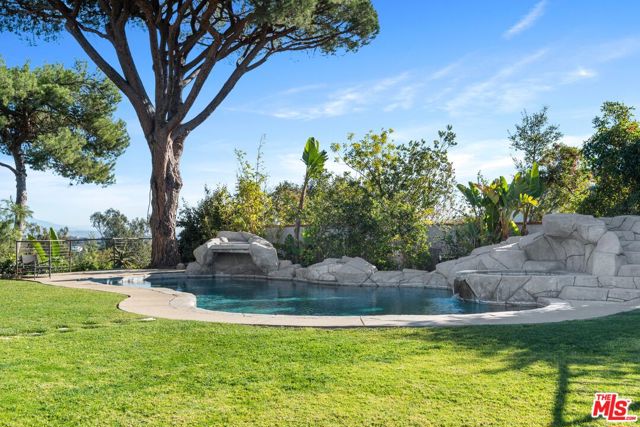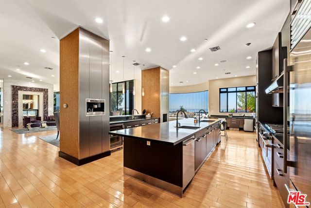Incredible opportunity to live in a resort-style home with the most amazing Pacific Ocean and City Views. This bright, open-planned house is in a very serene area of Brentwood. The gourmet kitchen features chef-grade appliances including a Sub-Zero refrigerator and Miele espresso machine. There is also a huge wine refrigerator. Spacious living, dining and family room on the first floor with an onyx stone-framed dual fireplace. The primary bedroom has a walk-in closet. 4 en-suite bedrooms located upstairs with a spacious 2nd family room. This home is minutes away from Brentwood Country Mart, exclusive fine restaurants and a shopping center. Experience the true leisurely life. Easy to show.