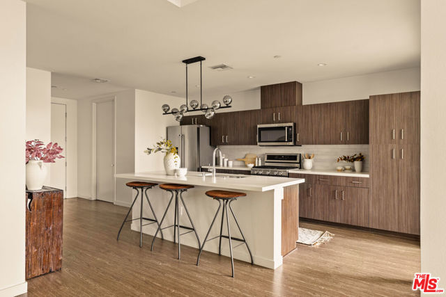 Welcome to a world of contemporary sophistication at X67 Lofts, one of Marina Del Rey’s most sought-after modern communities. This third-floor corner residence is quietly tucked at the back of the building, offering rare privacy while being just down the hall from the pool, fitness center, and community room. Designed for both comfort and style, the spacious two-bedroom, three-bath floor plan blends urban design with coastal ease, accentuated by soaring ceilings, expansive windows, and open-concept living bathed in natural light. The chef-inspired kitchen anchors the home with European cabinetry, quartz countertops, a large center island, and stainless-steel appliances perfect for both entertaining and everyday living. Two private patios invite seamless indoor-outdoor flow, ideal for morning coffee or sunset relaxation. Retreat to the primary suite, complete with its own patio, a generous walk-in closet, and a spa-like ensuite bath featuring dual vanities and a sleek, frameless glass shower. The second bedroom and bath offer versatility for guests or a stylish home office. At X67 Lofts, residents enjoy an array of upscale amenities: concierge service, furnished lobby with coffee bar, fitness center, pool and sun deck, resident lounge, EV charging stations, and beautifully landscaped courtyards with BBQ areas. Two secured parking spaces, guest parking, and included DirecTV and high-speed internet complete this exceptional offering. Located in the heart of the Marina Arts District, you’ll never need to get in your car movie theaters, restaurants, bars, Equinox, and grocery stores are all just outside your door. With beaches, shops, and the vibrant Venice and Abbot Kinney scenes nearby, and easy access to LAX and coastal bike paths, this is modern coastal living at its most effortless.