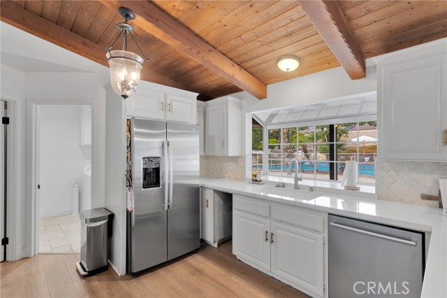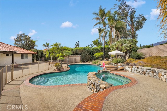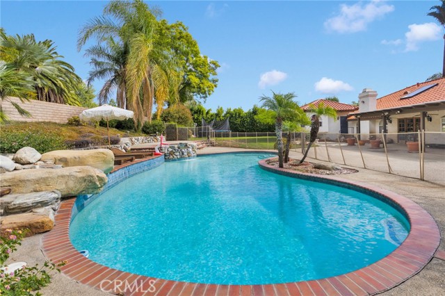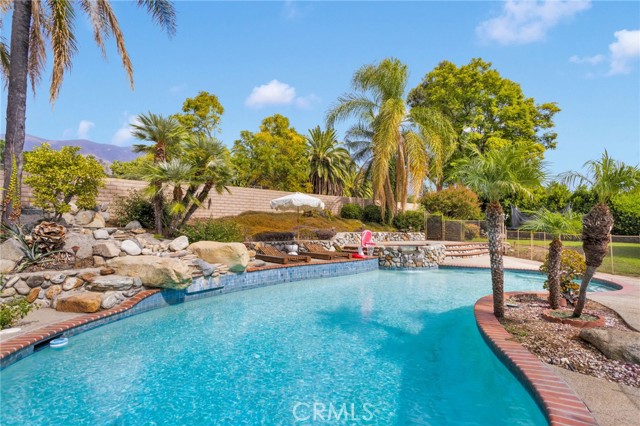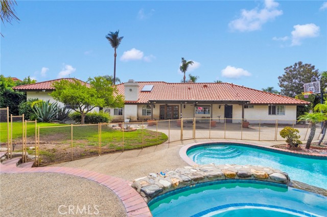 Introducing 9200 Golden Street, a spanish single-story sanctuary on nearly half an acre with RV parking, pool & spa.rnSet along a quiet Alta Loma street, this reimagined 4-bed, 3-bath residence (~3,500 sq ft) marries timeless Spanish architecture with modern refinement. A clay-tile roof and manicured grounds introduce airy interiors crowned by vaulted ceilings with exposed wood beams, abundant natural light, and an effortless flow between living, dining, and game room—each anchored by warm gathering spaces and dual fireplaces.rnrnThe chef’s kitchen pairs beauty with function: quartz counters, double ovens, gas cooktop, walk-in pantry, and thoughtful storage that opens to the family room for easy entertaining. The private primary suite offers a generous walk-in closet and a spa-inspired bath with double vanities, soaking tub, and separate walk-in shower. Three additional bedrooms and two baths provide comfort and flexibility.rnrnOutdoors, the expansive ~20,040 sq ft (0.46 ac) lot frames city-lights and mountain views, a fenced, heated pool & in-ground spa, lush lawn, and true RV access/parking—with ample space for an ADU/guest house or studio. A 3-car attached garage, interior laundry, recessed lighting, shutters/skylights, security system, low property tax rate, and no HOA complete the offering. Served by highly rated schools. A rare, single-level Spanish—renovated, refined, and ready for its next chapter.
