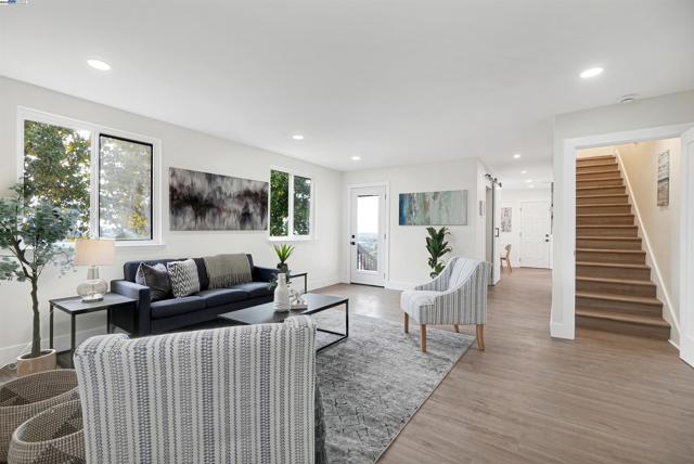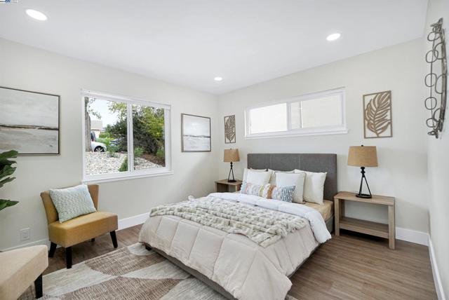 Welcome to this fully remodeled home located at the end of a peaceful court, offering stunning bay views from the bedrooms, kitchen, and backyard. Enjoy your morning coffee on the deck while taking in the beautiful scenery. This home features a brand-new roof, new concrete driveways and patios, and professionally landscaped front and back yards. Inside, every detail has been thoughtfully upgraded — including new electrical, energy-efficient LED lighting throughout, double-pane windows, solid wood doors, and luxury vinyl plank flooring. The brand-new kitchen showcases ceiling-height cabinetry with a full backsplash, while both bathrooms have been completely remodeled with modern finishes. Additional upgrades include a high-efficiency water heater and high-efficiency heating furnace for year-round comfort and savings. Convenience is built in, with washer and dryer hookups both upstairs and downstairs. The versatile floor plan is perfect for a large family or can easily accommodate a separate rental space downstairs. Move-in ready and beautifully finished, this home combines comfort, style, and breathtaking views — a true must-see! Views: Downtown