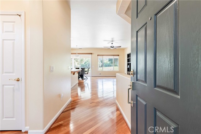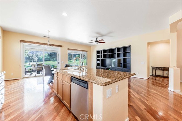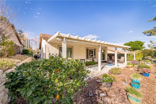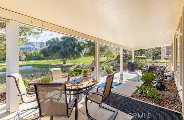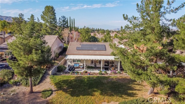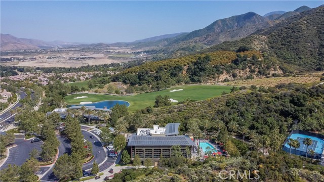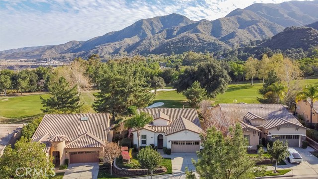 Beautiful Glen Ivy Golf Course VIEW Home that sits on the 7th fairway in the desirable 55+ gated community of Trilogy, QUIET & PRIVATE. Great Location, absolutely one of the BEST Views and locations in Trilogy. This upgraded home is in pristine condition, move-in ready, almost 1600 sq. (approx. 1572 sq ft.) You will have no electricity bill because this home is Solar equipped with a back up battery. This will save you lots of money monthly! This home has a water softener system. OPEN FLOOR PLAN, Gourmet kitchen with granite counters, newer SS appliances (including brand new refrigerator), maple cabinets, New Farm House Sink, chef’s island with bar seating which opens up to the great room. Wood Flooring and a private courtyard. Golf course views & Mountain View’s from the great room & primary bedroom. Master bedroom with walk-in closet for added space and features closet organizer. Large laundry room with washer and dryer provided and a built in sink. The Primary and Guest suite are large and there is a flex room which is currently used as an office. Enjoy the view of the golf course & Cleveland National Forest from your outdoor patio with new aluminum wood patio cover. There is a raised bed self watering garden for your convenience. Front Yard Maintenance is maintained by HOA. Trilogy is an active 55+ adult community surrounded by the Glen Ivy Golf Course and the Cleveland National Forest with many wonderful facilities, such as indoor and outdoor pools, hot tub, BBQ’s, tennis courts, state of the art gym, indoor walking track, exercise classes, ballroom, amphitheater, pickleball, bocce ball, arts & crafts center, billiards room, WIFI, dances, dinners, Bistro by the pool & many social opportunities and clubs, which you as a resident will have access to. All of this near Lots of shopping and the Glen Ivy Hot Springs Spa. This is True Resort Style Living at its Fullest. This home comes partially furnished.