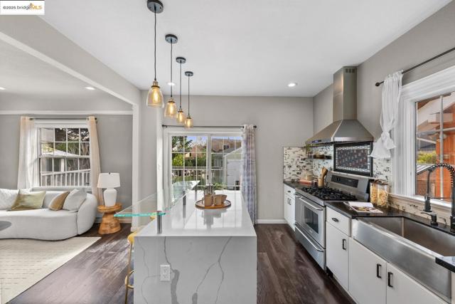 Modern Comfort Meets Everyday Livability. Beautifully updated and move-in ready, this 4-bedroom, 2.5-bath gem perfectly balances modern design with relaxed California living. The open-concept floor plan showcases a gourmet kitchen with custom cabinetry, a quartz waterfall island, stainless steel appliances, and a farmhouse sink, the ideal centerpiece for cooking, dining, and gathering. Recent upgrades include newer flooring, refreshed finishes, and thoughtful design touches throughout. Step outside to your private backyard retreat, complete with new pavers, a lush lawn, and updated landscaping. Unwind in the hot tub or cold plunge, or entertain on the sunny, sheltered deck that stays warm even when the Bay breeze picks up, creating a true year-round sanctuary. The detached garage adds flexibility for a gym, studio, office, or creative space. Enjoy an unbeatable location close to Ashby BART, Berkeley Bowl, Bay Street Emeryville, and South Berkeley’s vibrant farmers market. With easy access to major highways, top-rated schools, and incredible dining along Adeline Street and San Pablo Avenue, this home offers the best of Oakland and Berkeley living and everyday convenience.