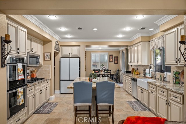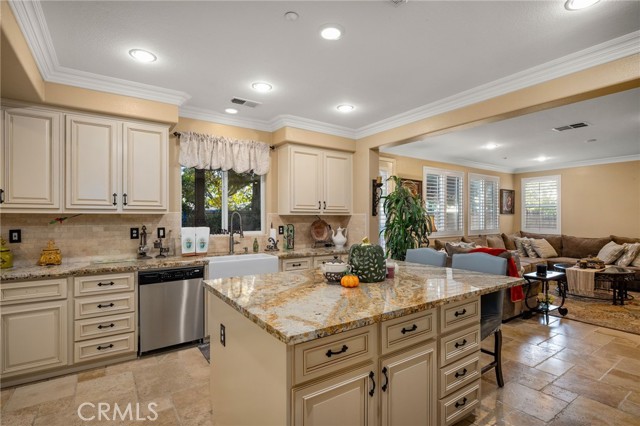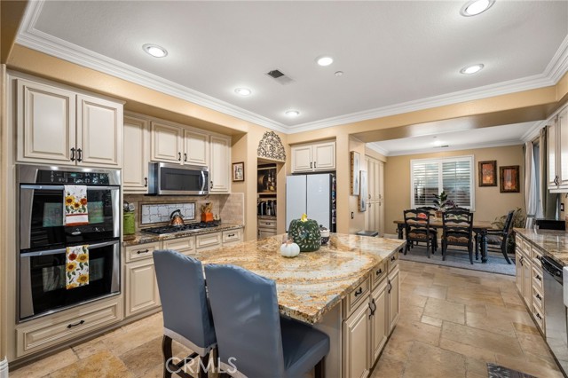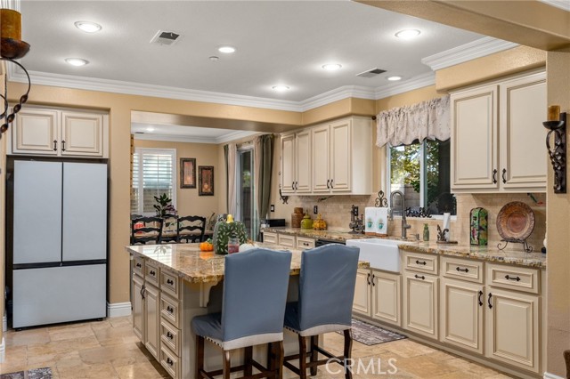 Step inside this beautifully upgraded 5-bedroom, 3-bath home located in the highly sought-after gated community of Citrus Heights in North Fontana. With generous living spaces and thoughtful design throughout, this home perfectly balances everyday comfort with impressive style. The open-concept floor plan creates a seamless flow from the living and dining areas to the spacious kitchen, which is a true chef’s delight featuring rich wood cabinetry, granite countertops, a custom backsplash, and plenty of room to gather and entertain. Downstairs, you’ll find a bedroom and full bath, ideal for guests or multi-generational living. Upstairs, the remaining bedrooms offer space and privacy, along with a huge loft that is perfect for a home office, game room, or cozy second family space. Every detail has been elevated, from travertine tile floors on the main level and elegant wood flooring upstairs to fresh paint, upgraded baseboards, and custom chair rails throughout. The wrought iron front door and decorative entry medallion make an unforgettable first impression. Step outside to your private backyard retreat, complete with a large, covered patio framed by mature trees, ideal for hosting friends or simply unwinding in the shade. Even the washroom features travertine floors, adding a touch of luxury in every corner. The 3-car tandem garage offers plenty of space for vehicles, storage, or a workshop setup. With its prime location, stylish upgrades, and tranquil outdoor living, this North Fontana gem is move-in ready and waiting for its next chapter. Come experience the best of Citrus Heights living!