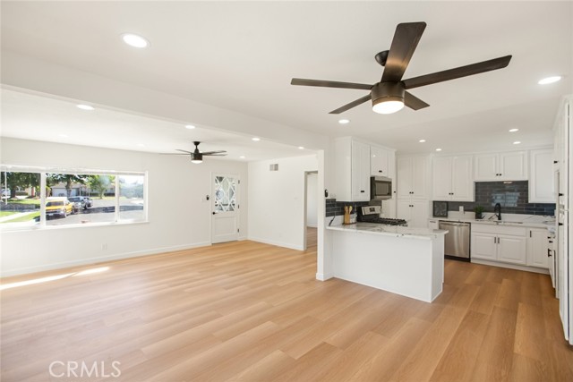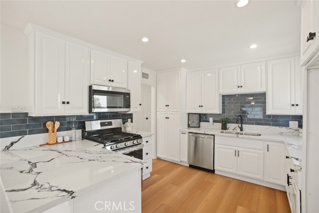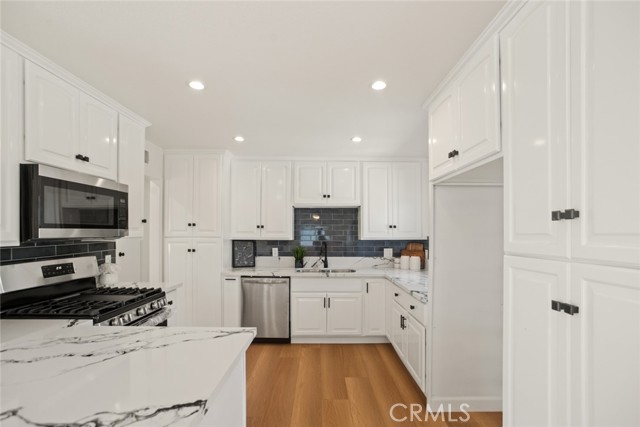 Welcome to Sabine Dr, in the city of La Mirada. This charming home offers a comfortable and spacious living experience with 3 bedrooms, 2 bathrooms and 1,262sqft of living area. Nestled in a quiet cul-de-sac, it provides a peaceful and private atmosphere for you and your family. Upon entry you will be greeted by the warm feel of the newly remodeled floors and an open concept in the living room with ample natural light flowing through the dual pane windows, creating a cozy and inviting ambience. The kitchen is equipped with lots of cabinetry space and new quartz counter tops along with an adjacent separate laundry room, the bedrooms are well appointed with 2 of the bedrooms that are generously sized and a more spacious third primary bedroom with its own private bathroom. Some of the many highlights of this property are the beautiful back yard and a built in deck overseeing the city lights, also paid off solar panels and newer electrical panel. With over 10,000sqft LOT makes it perfect for outdoor activities and gatherings, in addition the detached 2 car garage and long driveway is great to add an ADU. The house is conveniently located near numerous amenities, including shopping centers, restaurants, schools and much more.