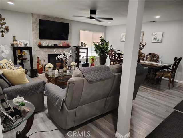 Fully remodeled, spacious single-story home! Featuring 3 bed, 2 baths plus a bonus room that can be used as a 4th bedroom. 2 car attached garage, laundry area in garage. An open floorplan, kitchen featuring soft close cabinets, Quartz countertops, custom backsplash, high-end stainless-steel appliances! A spacious dining area, custom fireplace, both bathrooms with new vanities, marble counters, custom showers, new shower glass doors and all new new electrical & plumbing fixtures! Throughout the home you will find new LED recessed lights with dimers installed, ceiling fan with remote and LED light. New baseboards, new windows double glass and slider, new interior & exterior doors! New waterproof laminate flooring in whole house, new tile flooring in wet areas. Interior & Exterior painted with warm colors! A spacious entertainer’s backyard for all enjoyment, with extra-large patio cover! Plenty space to park and RV Parking as well! Locating in a well-established and quiet neighborhood. Conveniently located near shopping, Mall, schools, freeways and more! Low Tax Rate! Call now for your showing appointments!