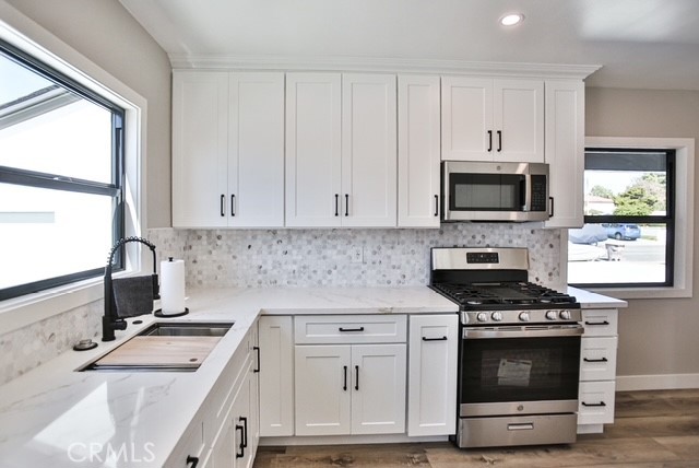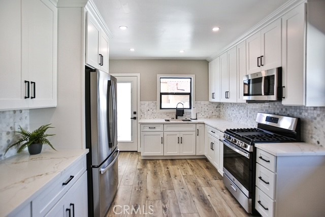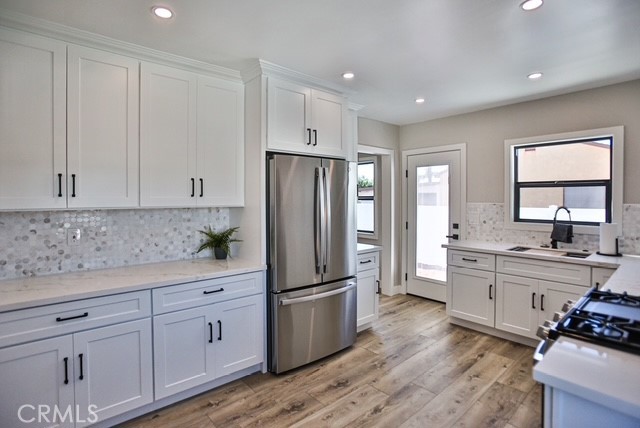 Discover this stunning, totally remodeled 4 bedroom, 2 bathroom home, offering 1,174 Sqft of thoughtfully updated living space. Nestled on a spacious 7,181 Sqft lot on a peaceful cul-de-sac, this home boasts undeniable curb appeal. Ample parking and clean water Eco lawn landscaping adorn. Step inside to find a beautifully updated kitchen and bathrooms that boasts gleaming quartz countertops and beautiful backsplash, white shaker cabinets with soft-close doors and drawers, black hardware and fixtures, and stainless steel appliances—all designed to inspire your inner chef. The home’s 2 bathrooms have been tastefully remodeled. The hall bath offers a full tub with shower, while the primary bath features a walk-in shower with a sleek glass enclosure. Throughout the home, each room enjoys it’s own mini split for heating and air-conditioning for better efficiency and economy. The attached garage offers secure parking and additional storage. Step outside to your spacious backyard where a covered patio, and generous side yards provide the perfect setting for relaxation or entertaining. There is also potential for RV parking on the east side of the driveway, offering a convenient space for your recreational vehicle or storing outdoor gear additionally the owners have installed a new 50amp plug in the garage to charge EV’s. The back yard has plenty of room to add that ADU for additional living and/or income. Ideally located near Disneyland, Garden Walk, and freeways, this home offers easy access to top dining, shopping, and entertainment. Don’t miss out on this incredible opportunity!