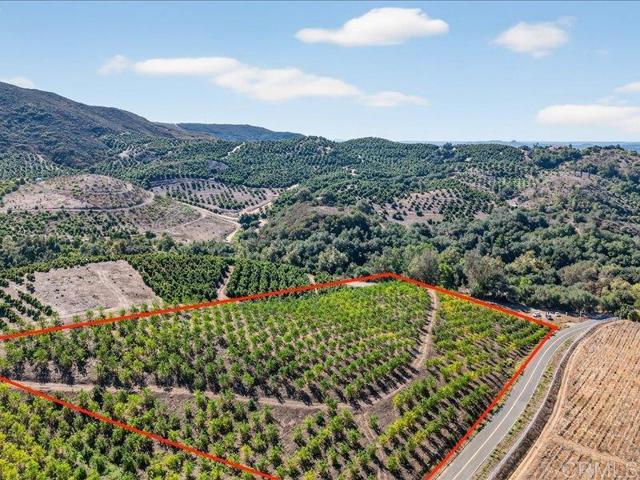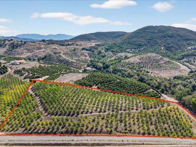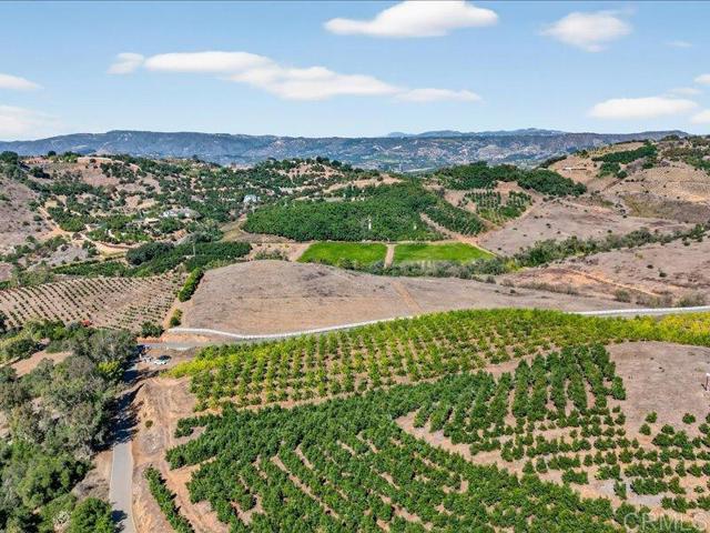 Beautiful corner, paved frontage 9.68 acres (421,660 sqft) parcel with professional manage lemon orchard. Stunning panoramic views, Trees are healthy & productive. Amazing sprawling multi million dollar estates with orchards. Water with water meter, electric & telephone is available.