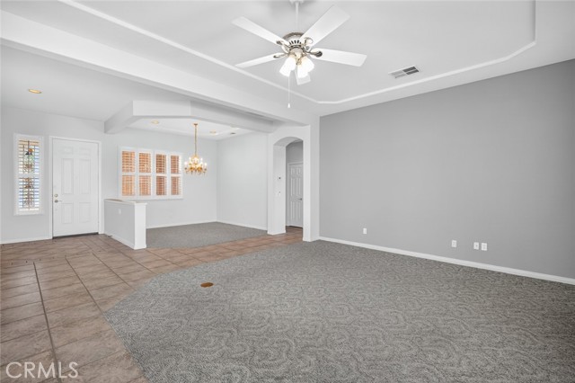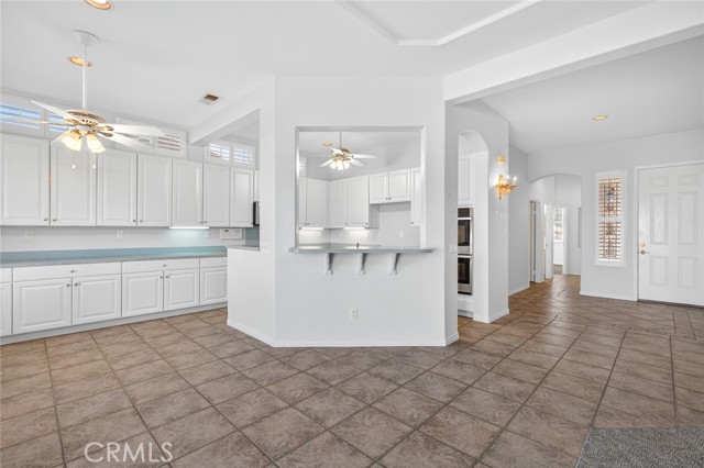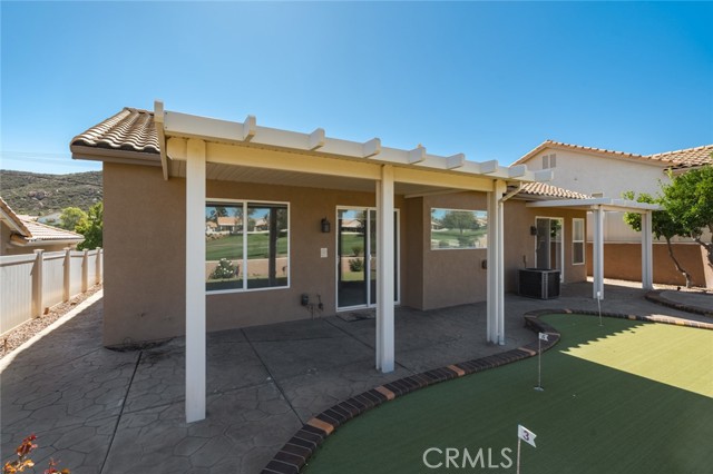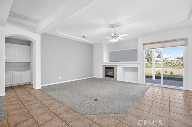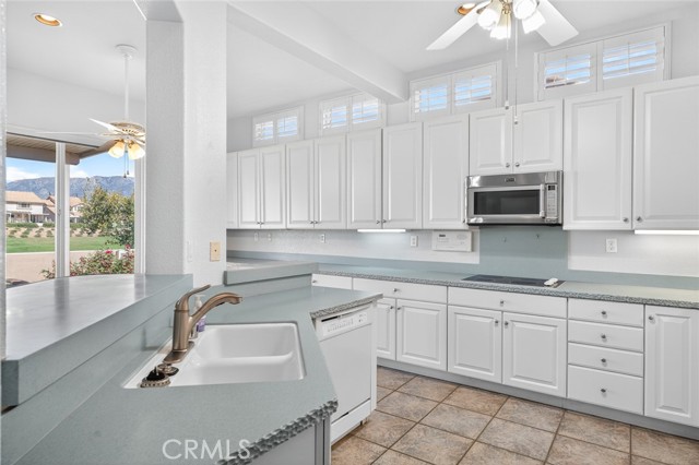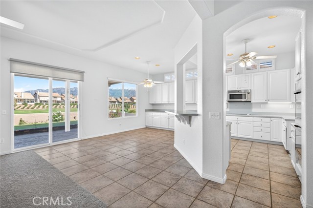 Welcome to 5098 Singing Hills, a beautifully maintained single-story residence located in the desirable 55+ Sun Lakes Country Club community. This spacious 1,882 sq. ft. home offers 3 bedrooms, 2.5 bathrooms, and an open, inviting floor plan designed for comfort, functionality, and scenic living. Step inside to find freshly painted interiors, recessed lighting, and a bright, airy living space that flows effortlessly from room to room. The living room features a cozy built-in fireplace, custom cabinetry for your TV and décor, and large windows framing stunning views of the golf course and nearby mountains. The open kitchen offers ample counter space, abundant storage, and direct sightlines to both the living area and backyard—perfect for entertaining. A flexible bonus area nearby can serve as a home office, reading nook, or hobby space. The primary suite is a private retreat with a walk-in closet, a luxurious ensuite bath featuring a walk-in shower and jetted soaking tub, and tranquil views of the outdoors. Ceiling fans in every room ensure year-round comfort. Step outside to your own private oasis—complete with a covered patio, a putting green, and beautifully landscaped grounds overlooking the lush golf course and natural wash for added privacy. The attached garage provides generous built-in cabinetry, drawers, and a workbench—ideal for storage and projects. Enjoy resort-style living with access to Sun Lakes’ world-class amenities, including golf, swimming pools, fitness centers, clubhouses, and social activities—all in a vibrant, gated community.