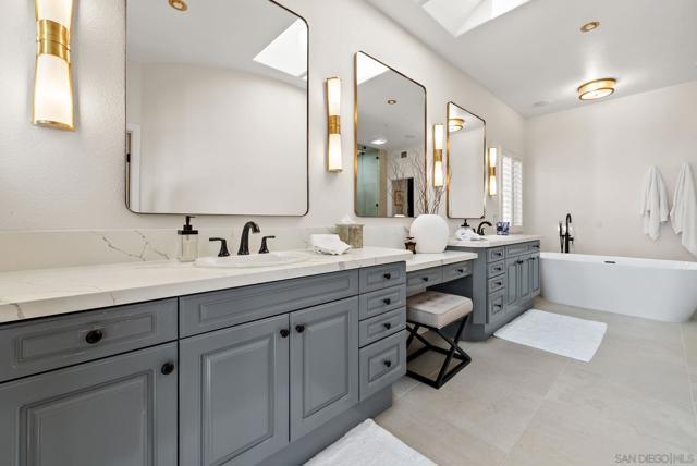 Embrace coastal living at its finest in this stunning home located in the sought-after Seaside community of Cardiff-by-the-Sea. Captivating lagoon and ocean views unfold from the living room, dining area, and primary suite, creating a serene coastal backdrop for everyday living. This residence has been completely remodeled with exceptional attention to detail. The new kitchen features premium appliances, custom cabinets and a sleek modern design with eating bar connecting to a spacious family room ideal for gathering. The primary suite offers a spacious spa-inspired bathroom, with soaking tub, dual vanities with makeup area and walk-in shower. Outdoors, discover your own private retreat. The backyard has been transformed with a featured mosaic fountain wall, fire elements, lush landscape and private patio. French doors open from all the main living spaces and primary bedroom, allowing for full ocean and lagoon view. Perfectly positioned near scenic walking trails that connect to Rancho Santa Fe, Solana Beach, and the San Elijo Lagoon Nature Reserve, this home is also just moments from Cardiff’s pristine beaches, Seaside Market, and the vibrant local dining scene. Embrace coastal living at its finest in this stunning home located in the sought-after Seaside community of Cardiff-by-the-Sea. Captivating lagoon and ocean views unfold from the living room, dining area, and primary suite, creating a serene coastal backdrop for everyday living. This residence has been completely remodeled with exceptional attention to detail. The new kitchen features premium appliances, custom cabinets and a sleek modern design with eating bar connecting to a spacious family room ideal for gathering. The primary suite offers a spacious spa-inspired bathroom, with soaking tub, dual vanities with makeup area and walk-in shower. Outdoors, discover your own private retreat. The backyard has been transformed with a featured mosaic fountain wall, fire elements, lush landscape and private patio. French doors open from all the main living spaces and primary bedroom, allowing for full ocean and lagoon view. Perfectly positioned near scenic walking trails that connect to Rancho Santa Fe, Solana Beach, and the San Elijo Lagoon Nature Reserve, this home is also just moments from Cardiff’s pristine beaches, Seaside Market, and the vibrant local dining scene.