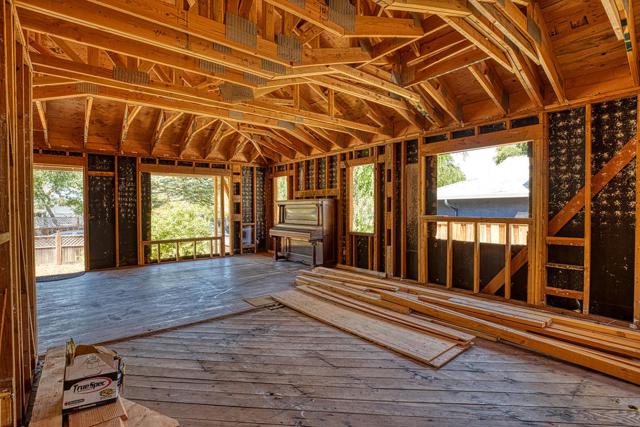 Incredible opportunity for the discerning Buyer, Investor and/or Builder to finish remodeling this single-level, gorgeous home and detached garage on flat land and own in the most sought-after, sunny, walkable neighborhood; Felton Acres. A higher foundation level perches the home in a way to capture views of green hills from the living room. All permits are current and approved by the County of SC. Build away today! This thoughtfully-designed property in mid-renovation comes with sophisticated building, landscape and septic plans from local experts. Engineered septic designed to add a future ADU. Stunning engineered trusses, new electrical main panel and comp roof installed in 2023. Gorgeous hardwood oak floors, lots of light and parking. Front and back yards flat and graded. Designed for a progressive Heat/AC pump system with ducted air in attic throughout house. Extra tall storage room in attic to be accessed by drop-down ladder. Walk one block to the Farmer’s Market and a few more to downtown’s hip breweries, wineries, cafes, boutiques, the new library, post office, Wild Roots Market, Henry Cowell’s redwoods, camping and trails, epic mountain biking and the iconic Covered Bridge Park with pump track. 15 minutes to Santa Cruz’s beaches and UCSC. Fruitful plum tree and roses.