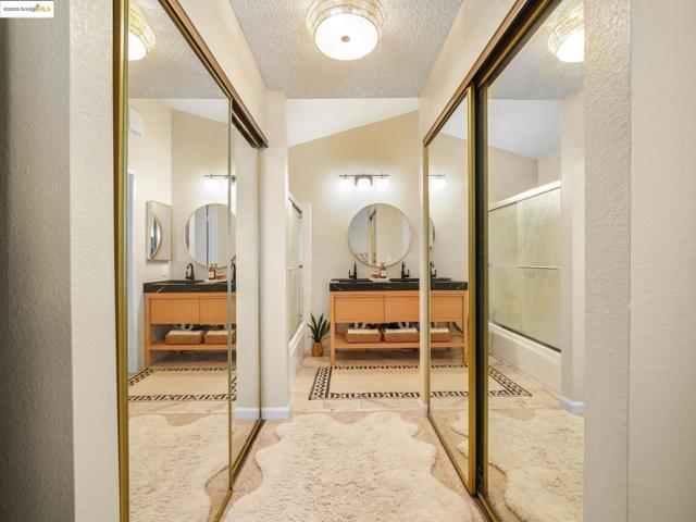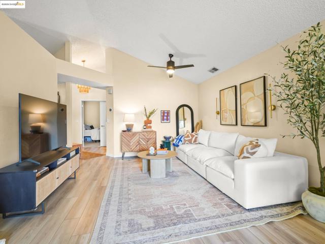 Welcome to this beautifully updated home in the heart of Hercules! This inviting residence perfectly blends comfort, modern style, and convenience in a serene community setting. Step inside to discover a bright, open living area featuring luxury vinyl plank flooring, cathedral ceilings, and new light fixtures that enhance the airy ambiance. The carpeted bedrooms offer warmth and comfort, while the primary bathroom shines with a brand-new vanity featuring dual sinks — the perfect retreat after a long day. Enjoy thoughtful upgrades throughout, including new shutters, floating kitchen shelves, and a washer and dryer conveniently located in the unit. Stay comfortable year-round with a ceiling fan and air conditioning. Relax or entertain on your private balcony, or take advantage of the community’s in-ground swimming pool and peaceful walking areas surrounded by parks and greenery. A detached garage adds extra convenience and storage. Ideally located close to shopping, restaurants, and easy freeway access to I-580, this home offers both tranquility and accessibility — the best of both worlds!