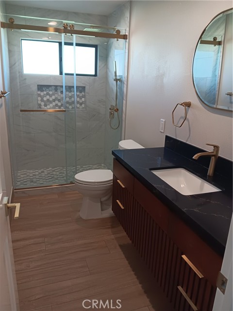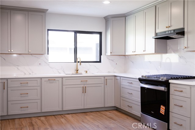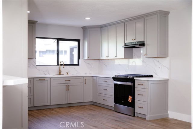 THIS ONE HAS BEEN BEAUTIFULLY DONE !! This one was just renovated from top to bottom and no expense was spared. It’s a 4 br 2 ba 2 car gar. 1396 sq ft. house 7600 sq ft corner lot in a low tax area.Close to schools, shopping and fwys. Everything was done tastefully and with quality materials and it shows. You can just see the craftsmanship. Living room has a huge sliding door and custom made wall panel with a built in electric fireplace.There is new paint, windows, and the windows are Low E . Thicker glass was used for better efficiency. New solid core front doors. All interior doors have been replaced to match. Even the hinges and knobs are new. It has new electrical recepticles and all new lighting. Recessed lighting in living room, kitchen and bathrooms. plumbing is copper pipe. All new faucets in gold finish very tastefully done. New floors throughout the whole house. 6 inch base moulding. The Kitchen has custom kitchen cabinets with a lazy susan in each corner and Quartz counter tops with matching backsplash that goes all the way up to the bottom of the upper cabinets. Both bathrooms have custom floating vanities , Qurartz counter tops, and Rain showers sprinkler heads, also frameless shower doors.Property has Concrete all around. Low maintnance yard sprinklers both front and back. There is block wall fencing all around with possible RV parking on one side. There is even a covered patio in back.rnWhen you move in here, you can be sure nothing will need to be replaced or will be breaking down soon. rnBUYERS AND AGENTS DO YOUR DUE DILLINGENCE AND VERIFY ALL INFORMATION IN THIS LISTING .