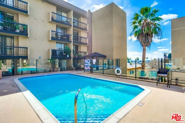 Classy and Fully updated sleek Condo in Hollywood! Perfectly located in the heart of Hollywood/Sunset Strip at the Hollywood Regis building, this FULLY RENOVATED JNR/1BA home is fully equipped for easy and comfortable living. Step inside to find an open floor plan with premium finishes, fabulous natural light, stunning hardwood floors, a designer color scheme, and a spacious living room. Entertain guests and mix drinks in the open concept kitchen featuring quartz countertops, stainless-steel appliances, dishwasher, sleek ample white cabinetry, gas cook-top, built-in microwave, track lighting, and an adjacent dining room with double glass soundproof sliding glass doors to the spacious balcony. Sit on the balcony and sip cocktails with friends while admiring the fabulous views of downtown Los Angeles. Discover relaxing evenings in the NYC loft style bedroom, which has a large walk-in closet with your own washer and dryer, Separate bathroom w/storage vanity and a shower/tub combo and separate vanity area. For a fit lifestyle, enjoy the community amenities of a sparkling heated swimming pool, hot tub, sun deck w/cabanas, and a fitness ceneter! Other features: 1-covered and secured parking space, onsite management, security fob on all entries, close to Runyon Canyon, shopping, chic restaurants, the Hollywood Bowl and more! Easy living LA style, the perfect pied- a -terre, first home or LA city pad, this little gem is a must see!