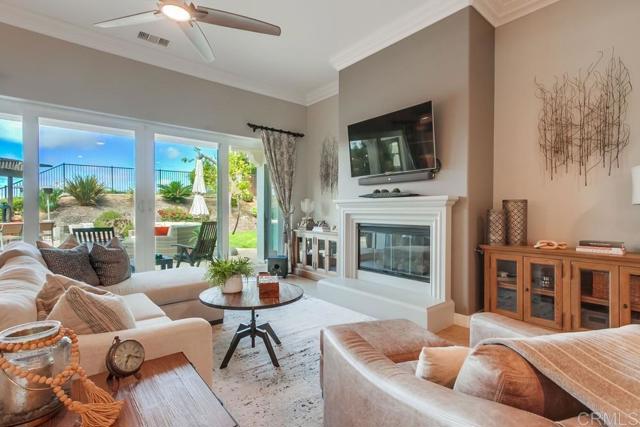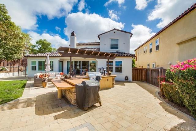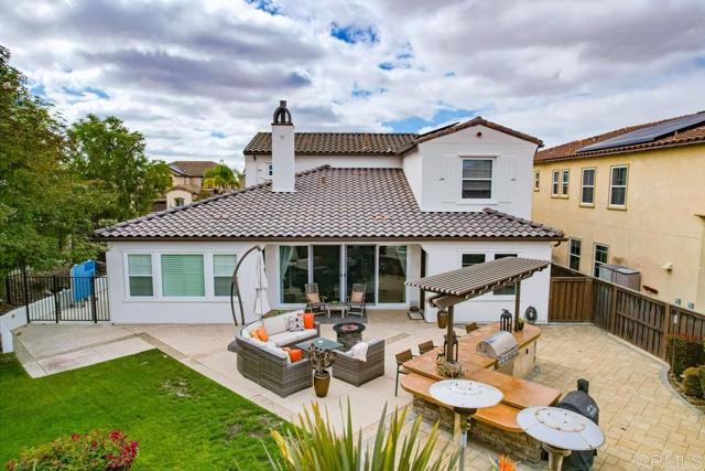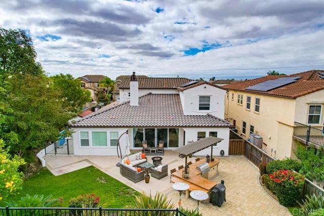 Welcome to this beautifully maintained Spanish-style two-story home offering 4 spacious bedrooms and 3.5 baths, located in a serene neighborhood with picturesque canyon views. Thoughtfully designed for comfort and functionality, the primary suite is conveniently located on the main entry level, providing ease and privacy. Inside, enjoy multiple living spaces including a formal living room, dining room, family room, and a casual breakfast nook adjacent to the kitchen-with high-end appliances. The gourmet kitchen features a central island—perfect for entertaining or everyday meals. A dedicated laundry room with ample built-in storage adds convenience to your daily routine, located on the entry level. Step outside to a backyard made for entertaining—complete with a lush lawn, a peek ocean view, built-in BBQ/bar area, and an expansive patio ideal for gatherings, all overlooking tranquil canyon vistas. The freshly painted exterior enhances the timeless charm of the home’s Spanish architecture. Additional highlights include a 3-car garage, oversized driveway, and dedicated boat/RV parking, offering plenty of space for all your vehicles and toys, plus the community club offers a work out room, a recreation room plus a pool is designated for residents only. This is a rare opportunity to own a spacious, move-in ready home in a quiet, well-kept community close to nature yet minutes from local amenities and only a few strides to the hiking trails.