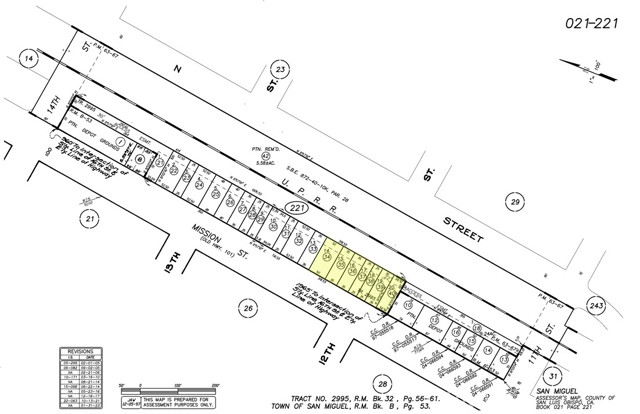 Downtown Commercial/Mixed-Use Building Lots! This affordable offering consists of seven (7) legal, buildable commercial/mixed-use lots in the downtown core of San Miguel. Located on Mission St, just a few blocks North of the historic San Miguel Mission, these particular lots are right next to the San Miguel Fire Department. The overall project (Tract 2995, 20 lots) has a pre-approved Conditional Use Permit for attractive commercial/retail spaces, with a mixed-use element that allows medium density residential units thru-out the upstairs! However, that approval will likely require modification by the County for this 7 lot package, as it was originally designed for the 20 lot project in whole. The County of SLO may consider increased density of residential units (beyond just the upstairs) to accommodate market trends, or combining or reconfiguring the smaller lots to fewer, larger parcels. Have bigger ambitions? Consider buying the other 13 lots as a larger package at $585,000 ($45,000/lot), or even the entire Tract 2995 (20 lots) for $825,000 – see individual MLS entries for each. Invest in your future and help turn this historic town into the desirable bedroom community of the Paso Robles’ that it deserves to be! Great 1031 Exchange opportunity for a land hold. Owner financing may be considered to qualified buyer with at least 30% down payment.