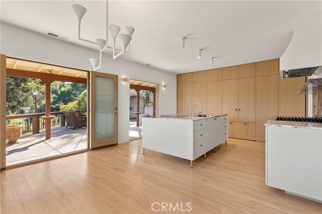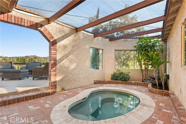 Nestled into the hillside on a quiet street in Woodland Hills, this gated corner lot property offers breathtaking views of the Valley and surrounding hills. Step inside to a spacious living room that’s flooded with natural light, accentuating the warmth of the original hardwood floors. At the heart of the home lies a designer chef’s kitchen, featuring high-end JennAir appliances, gorgeous marble countertops, a hidden walk-in pantry and inviting breakfast nook. Two sets of French doors lead out to a private covered patio with an in-ground spa, the perfect place to relax and soak in the unobstructed views. This home consists of four generously sized bedrooms (two on each level) and three full bathrooms (two on the main level and one upstairs). Each bedroom has its own walk-in closet, ensuring ample storage throughout. Additional highlights include a laundry closet, EV charger, wrap around front patio and oversized two-car garage with an overhang for additional covered parking. Ideally located south of the Boulevard, enjoy easy access to local shops/restaurants, the Woodland Hills Country Club and so much more.