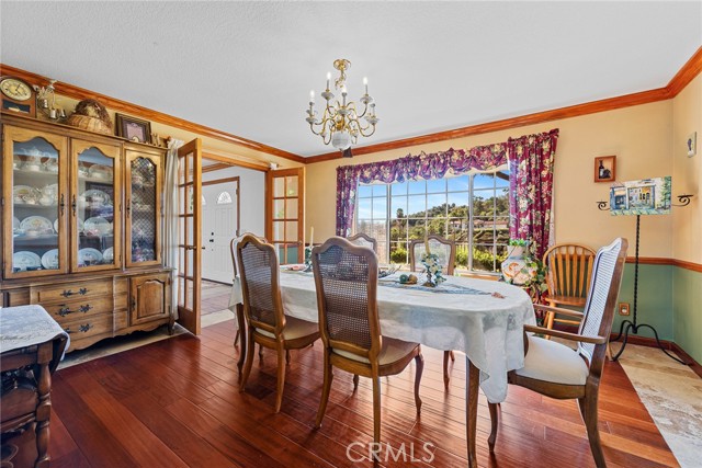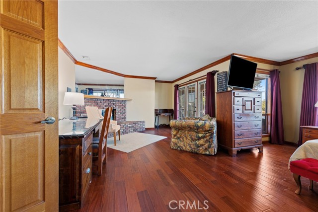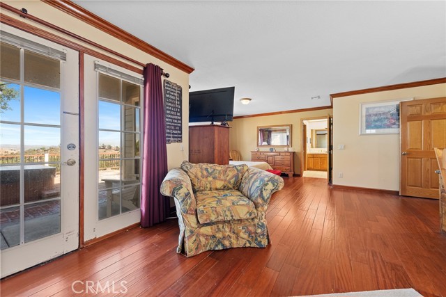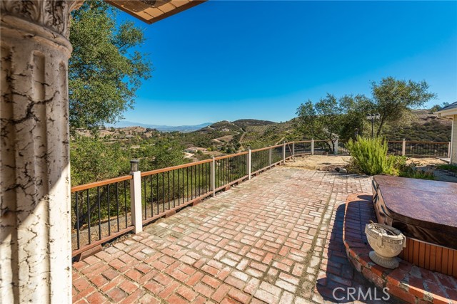 De Luz property- Nestled on a sprawling 5.15-acre lot in a desirable area of Temecula five minutes from Old Town, this scenic single-story residence offers a tranquil, large-lot lifestyle with exceptional potential. The main level of the home provides a comfortable layout featuring 3 bedrooms and 2.5 bathrooms. The inviting, open-concept design flows through expansive living areas, including a formal dining room and a large family room. Elegant details abound, such as Brazilian Cherry engineered flooring, classic wainscoting, and French doors leading to the exterior. The large kitchen is the heart of the home, featuring oak wood cabinetry, travertine tile flooring, and a convenient butler’s pantry. The adjacent dedicated dining area is perfect for casual meals. Utility spaces include a spacious laundry room with a large porcelain sink, upper and lower cabinets, and matching travertine tile. The luxurious Primary Suite offers a walk-in closet, a dedicated fireplace, and an en-suite bathroom complete with double basins and a relaxing Jacuzzi tub. A unique opportunity exists in the upper level, which features two rooms and a loft—perfect for extra storage or flexible space. Outside, the backyard features extensive brick paving and a 7-foot Jacuzzi-brand hot tub, ideal for enjoying the quiet acreage.